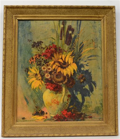 Firma indecifrata "Vaso con fiori" Olio su tela (cm60x50) firmato in basso a sinistra, in cornice