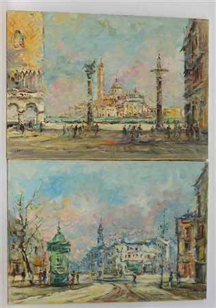 Cremonesi "Scorci di città" Coppia di olii su tela (cm 50x70)
