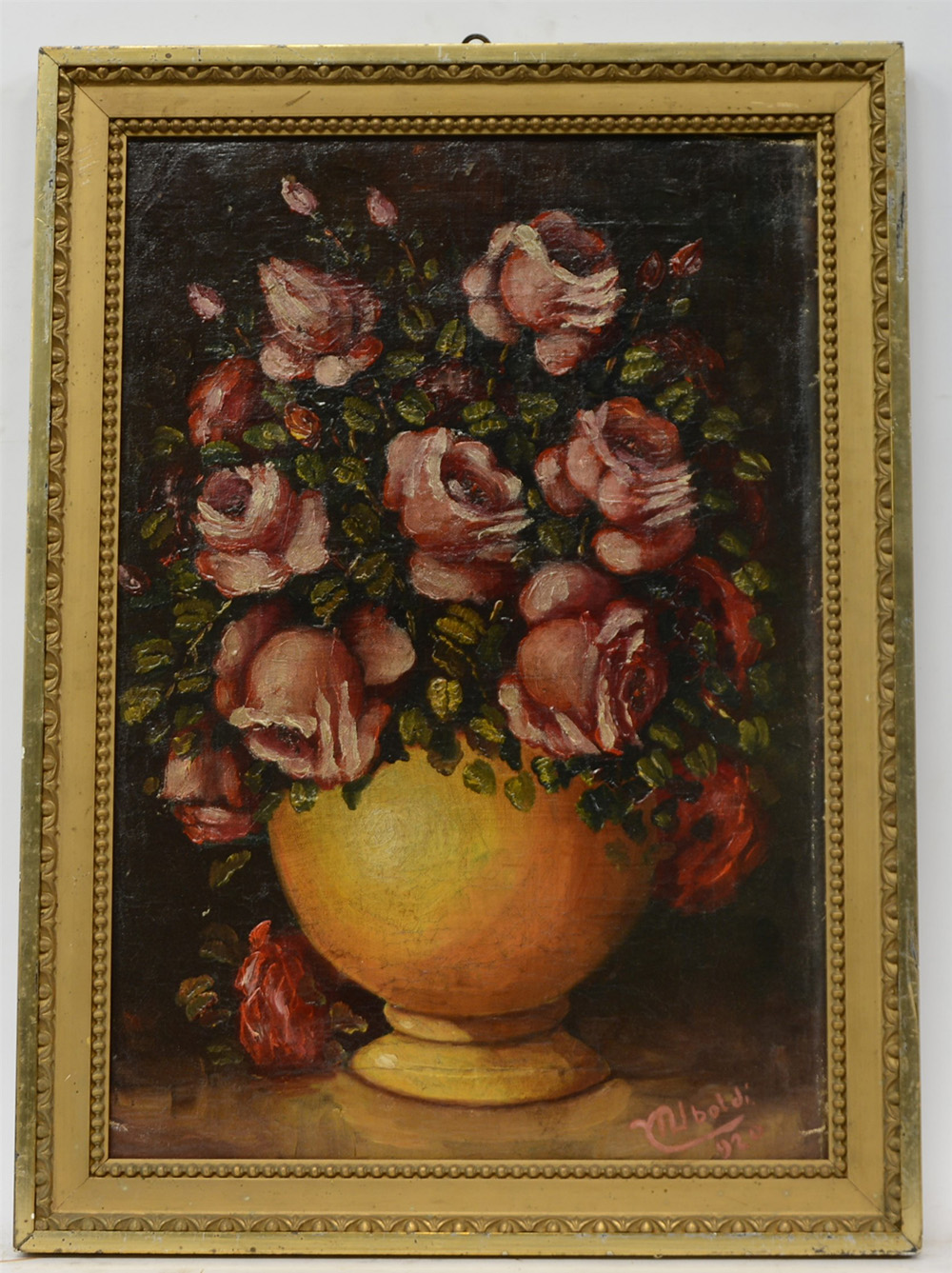 Firma indecifrata "Vaso di fiori" Olio su tela (cm 60x40) In cornice