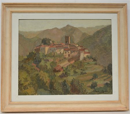 Rubens Carni "Palleroso Garfagnana" Olio su comensato (cm 48x58) Firmato e datato 1979 in basso a destra. Iscritto e titolato al retro, in cornice