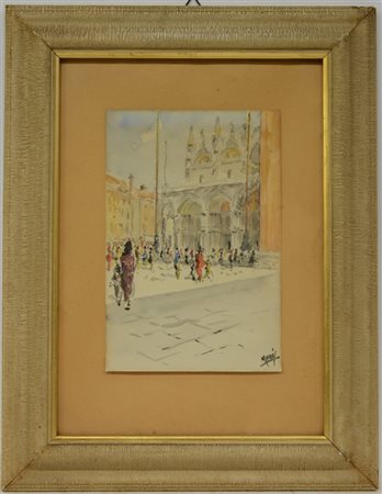 Firma indecifrata "Scorcio di Venezia" Acquerello (cm 24x16) firmato in basso...