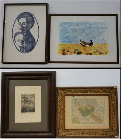 Lotto composto da quattro incisioni di diversa epoca e decoro. In cornici (difetti)