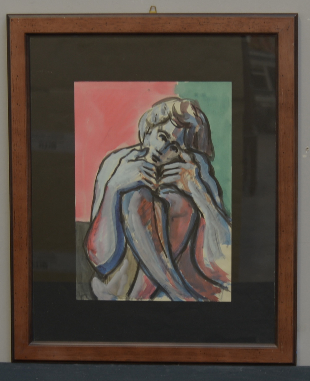 "Figura accovacciata" tecnica mista su carta (cm 35x25) firmata "Vittorio" in basso al centro, in cornice