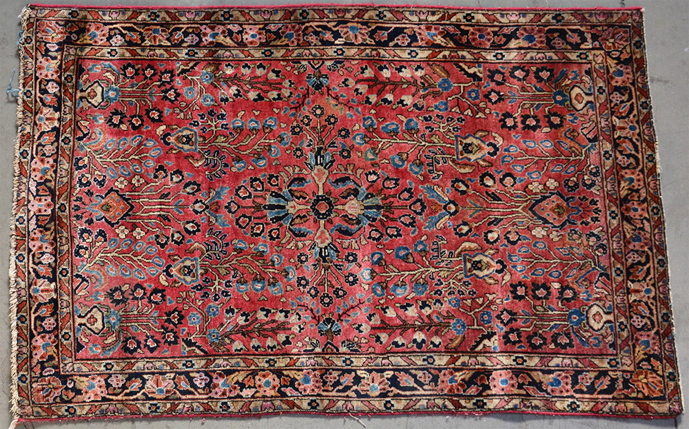 [Tappeti] Tappeto Sarouk, Persia, secolo XX. Disegno floreale sparso su fondo rosa (cm 157x104)(difetti)