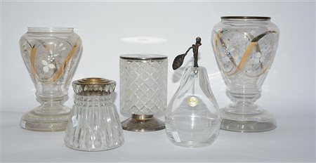 Lotto composto da cinque oggetti diversi in vetro e cristallo (difetti e...