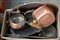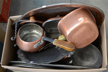 Scatola contenente numerosi oggetti in peltro e metallo (difetti)