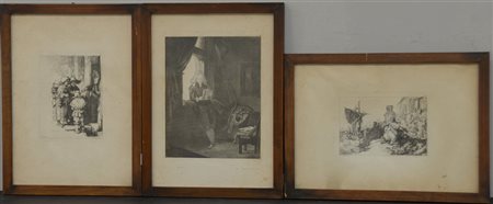 Lotto composto da tre incisioni da Rembrandt. Epoche diverse. In cornice