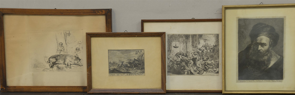 Gruppo di quattro incisioni di diversa epoca di cui due da Rembrandt, in...