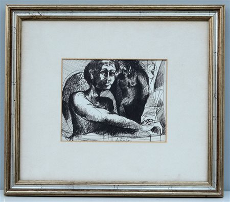 Firma indecifrata "Figure" china su carta (19,5x24 c.), firmato in basso e al...