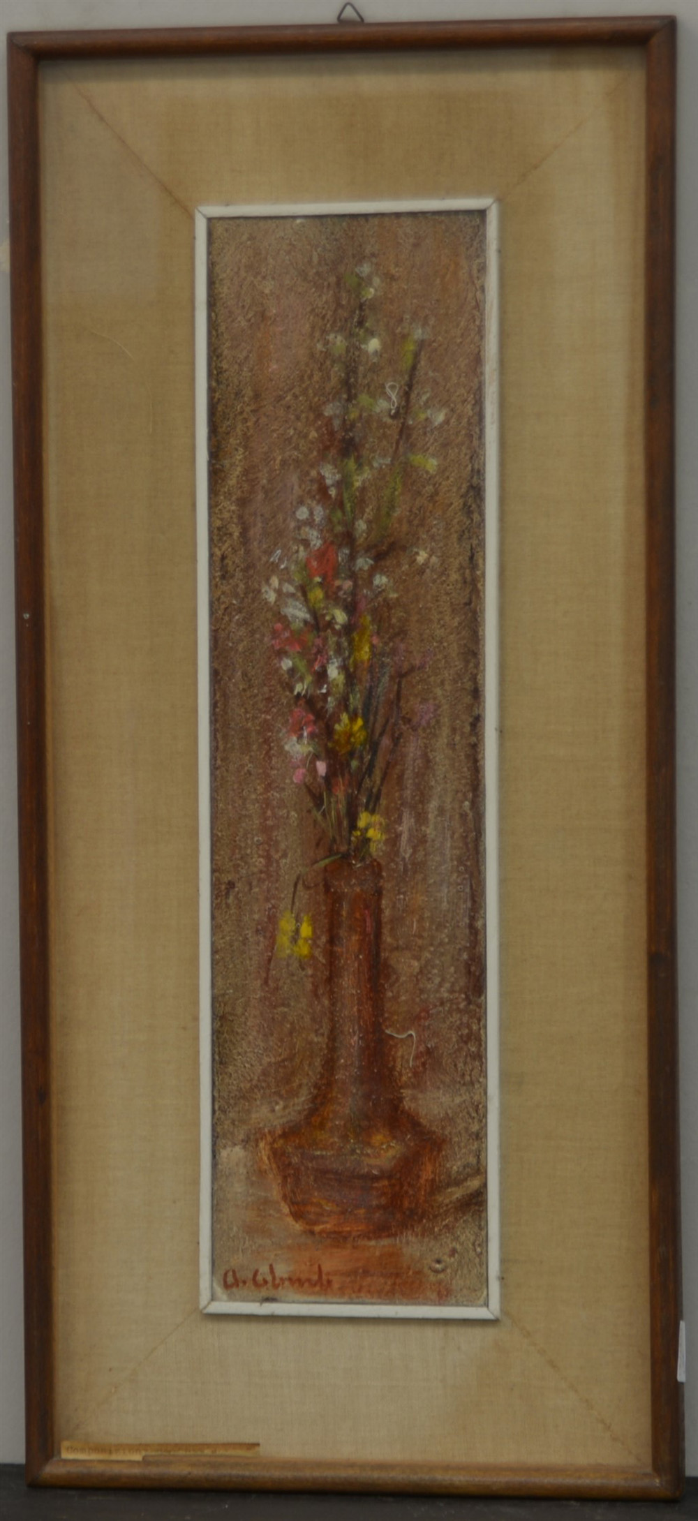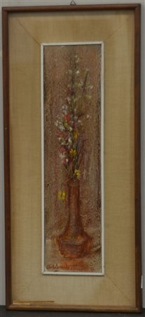 Firma indecifrata "Vaso di fiori" olio su masonite (cm 40x10) firmata in...