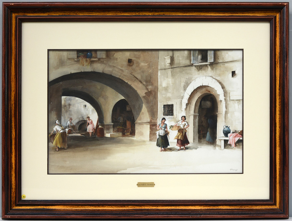Ignoto "Cascinale" 1983 acquerello su carta (cm 41x63) firmato "Thomas" e datato in basso a destra. In cornice