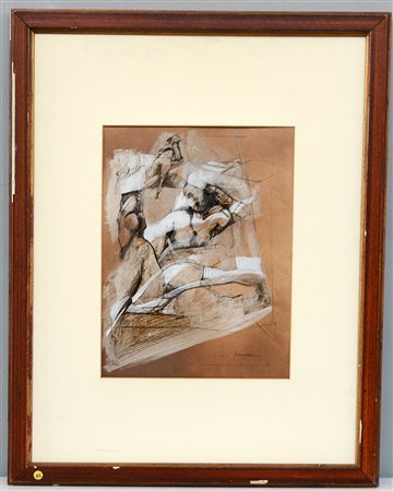 Vanni Saltarelli (Fino Mornasco 1945) "Nudi" tecnica mista (cm 37x27) firmato in basso a destra. In cornice