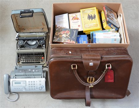 Lotto composto da una valigia in cuoio, un fax, una macchina da scrivere...