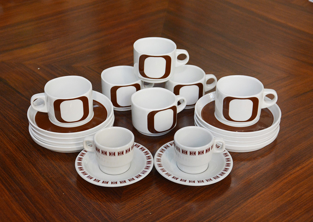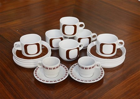 Lotto composto da un servizio da caffè design Wolf Karnagel modello "Carré" di 28 piattini e 12 tazze, produzione Rosenthal Studio Line, Germania, sec XX, unito a un servizio da caffè Richard Ginori di tre piattini e tre tazzine (lievi difetti)