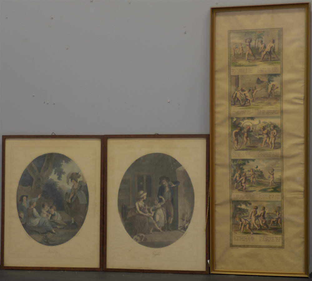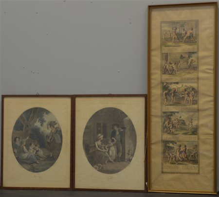 Lotto composto da tre litografie a colori di diversi autori in cornici (difetti)