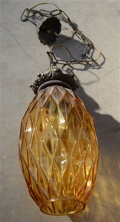 Lanterna in vetro ambrato con supporto in metallo (h cm 42)(difetti)