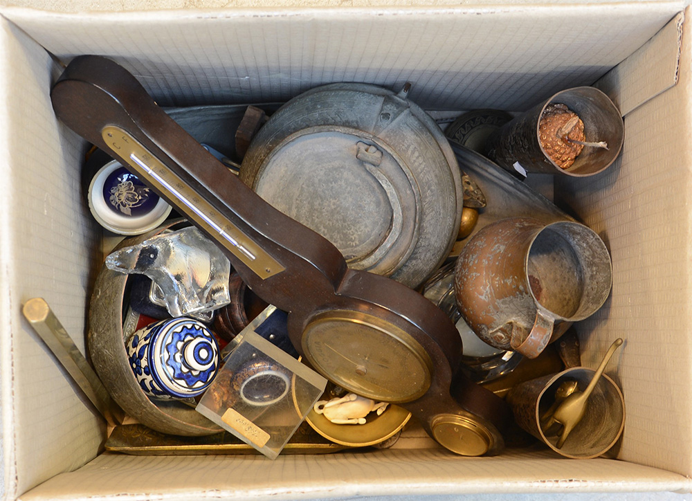 Cartone contenente numerosi oggetti di diversa epoca ed uso
