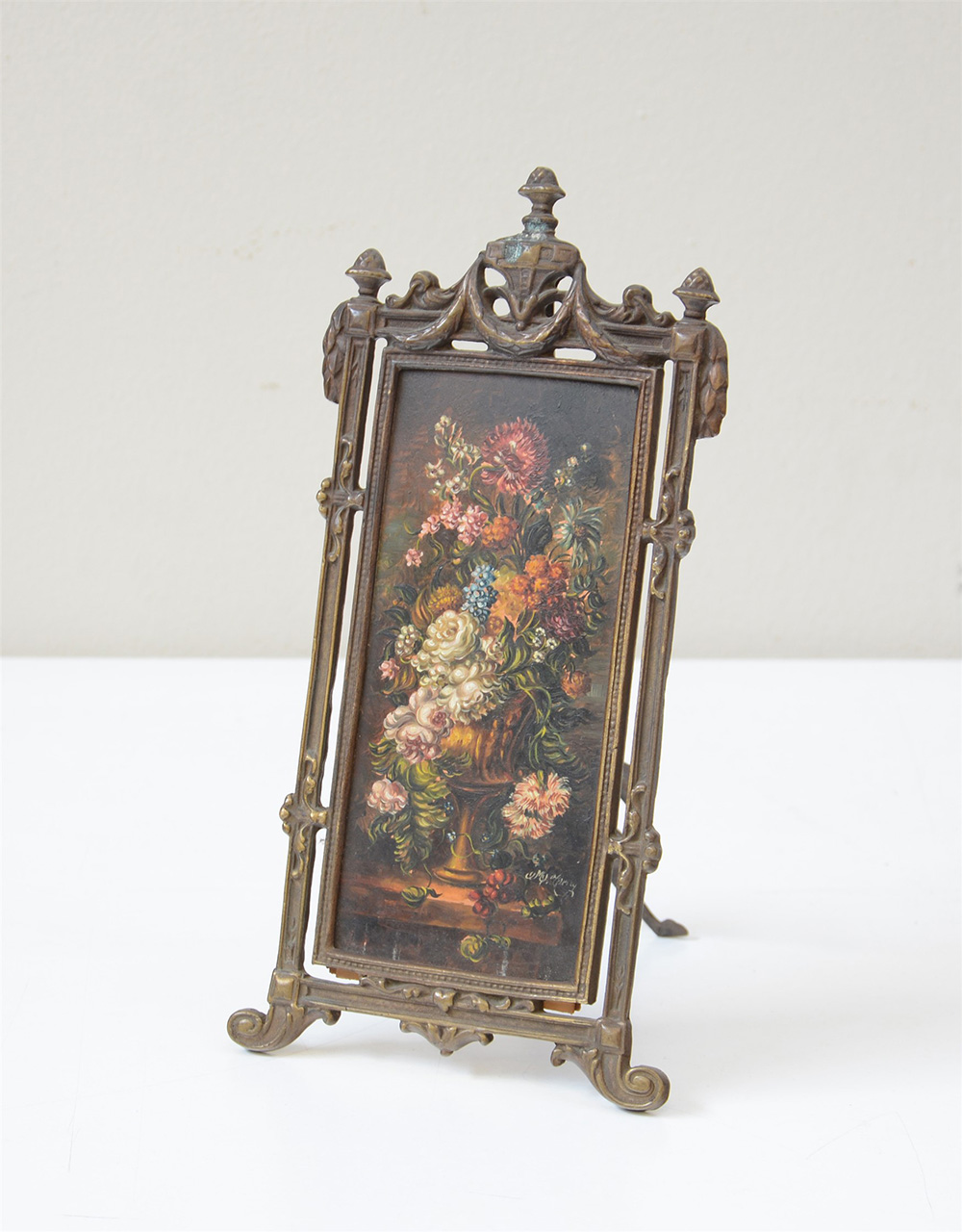 Ignoto "Vaso con fiori" olio su cartoncino (cm 20x10). In cornice di metallo...