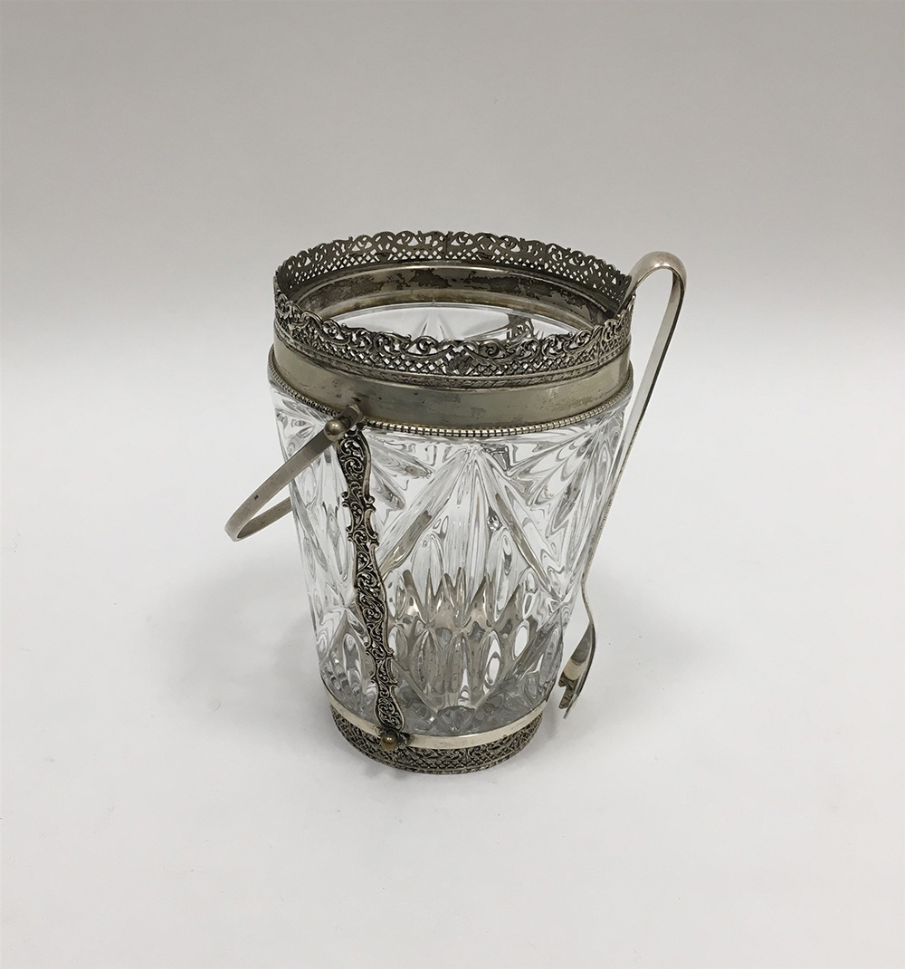 Portaghiaccio con montatura in argento e corpo in vetro e pinza (h....