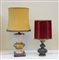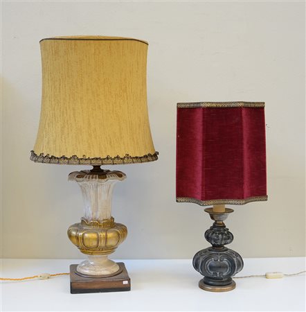 Lotto composto da due lampade da tavolo con fusto in ceramica bianca e oro e in metallo , misure diverse (difetti)