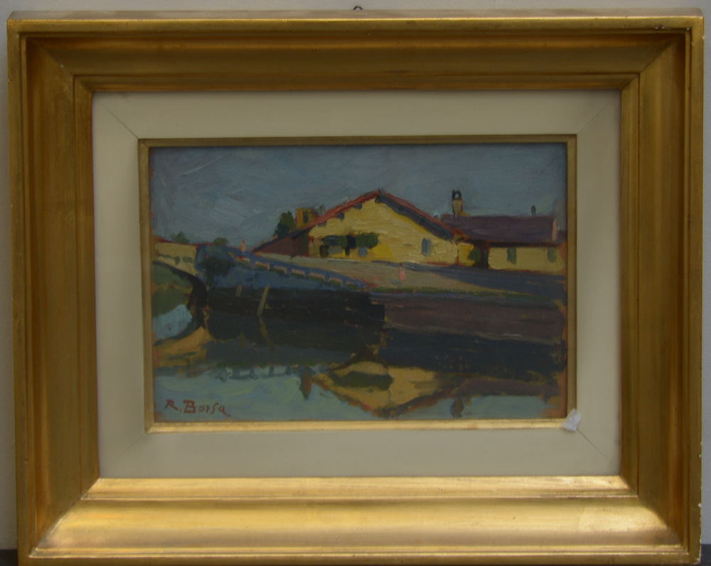 Borsa Roberto (Milano 1880 - 1965) "Scorcio di canale" olio su cartone (cm 16x23) firmato in basso a sinistra. In cornice
