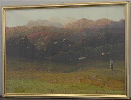 Pessina Angelo (Milano 1896) "Paesaggio pedemontano" olio su tela (cm 70x100)...