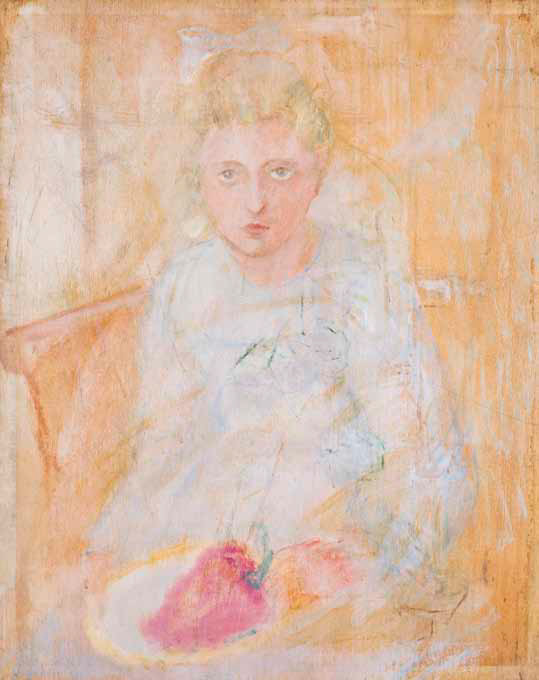 PIO SEMEGHINI Quistello 1878 – Verona 1964 Bambina con il peperone rosso tecnica mista su compensato, cm 49,5x39. Al verso dichiarazione di autenticità di Gianna Semeghini