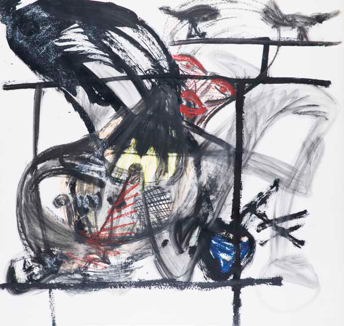 Martin Disler Seewen 1949 - Ginevra 1996 Senza titolo, 1981 tecnica mista su tela, cm 198x200. Firmato e datato in basso a destra: Disler 81