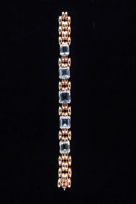 Bracciale in oro giallo con acquemarine per complessivi ct. 50,00 ca, gr. 33,3.