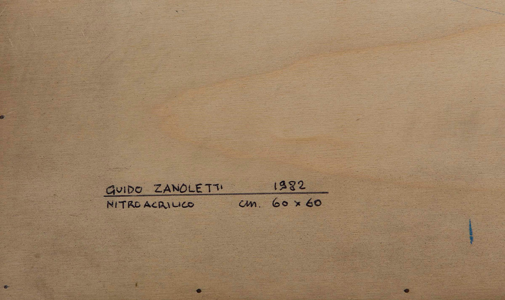 Guido Zanoletti (1933), Senza titolo, 1982, nitro acrilico su tavola, cm 60x60 firmato e datato al retro Timbro al retro Centro Culturale Sincron, Brescia
