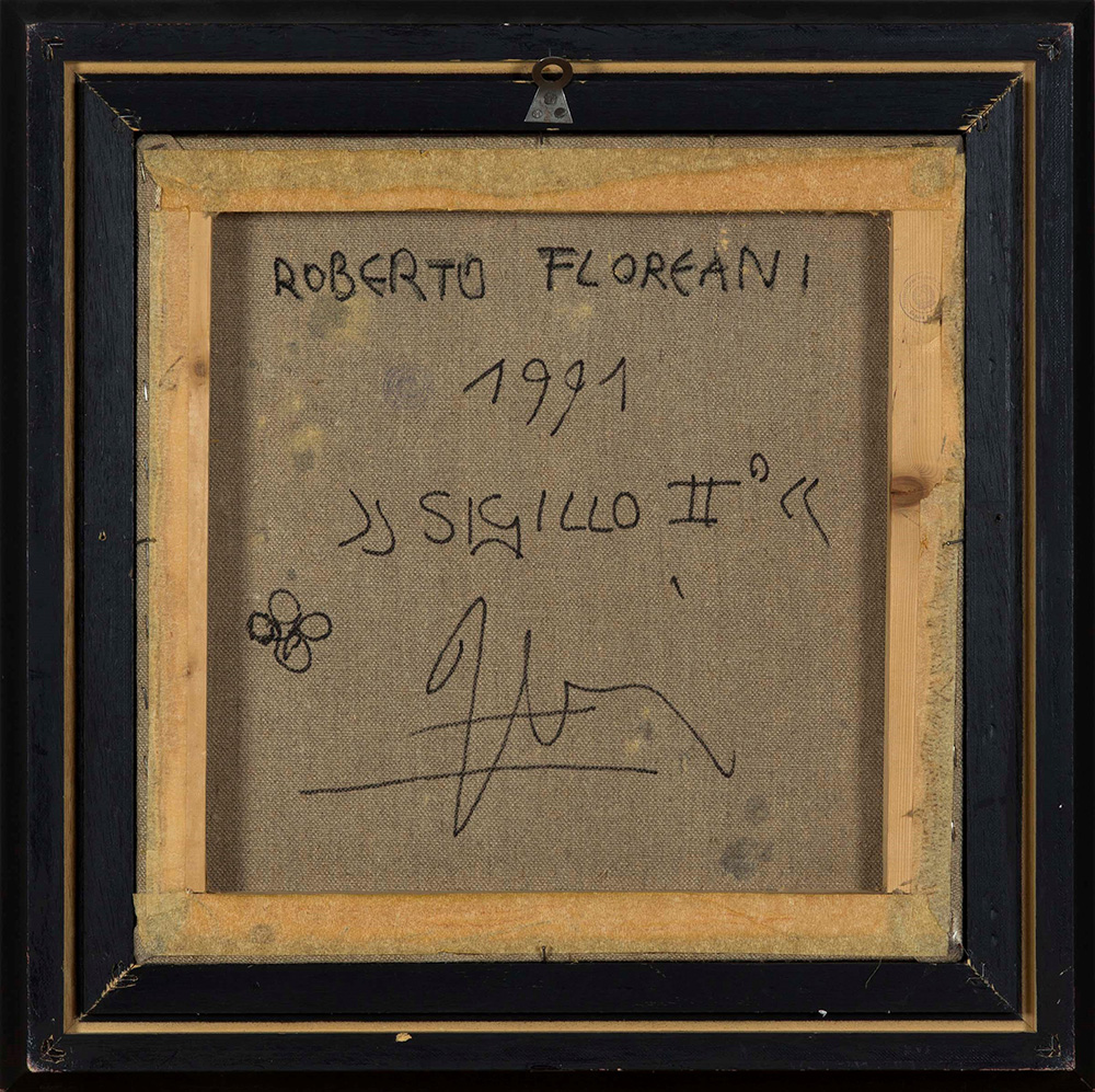 Roberto Floreani (1956), Sigillo II°, 1991, tecnica mista su tela, cm 40,5x40,5 firmato, intitolato e datato al retro, Provenienza: Collezione Feierabend, Milano