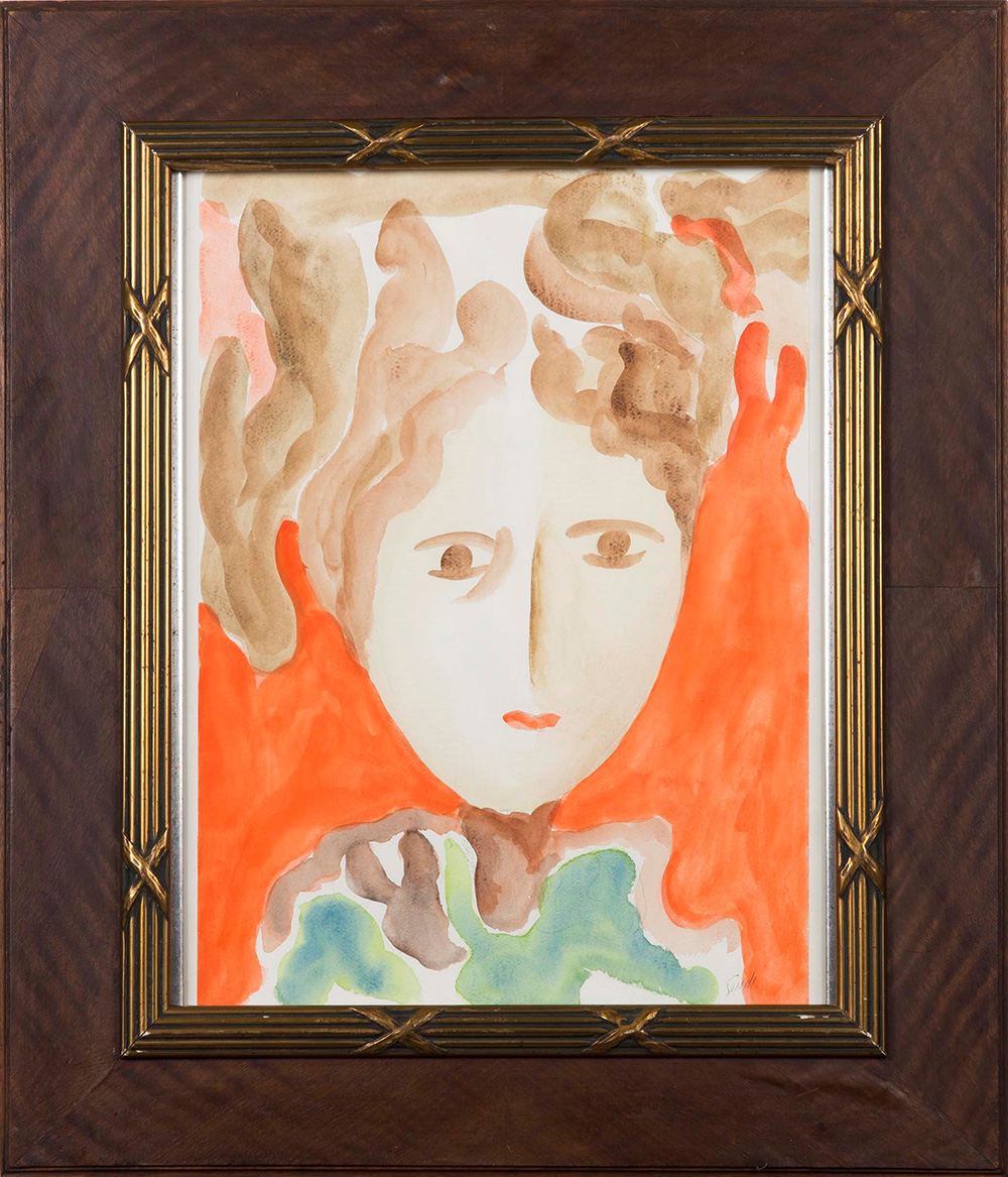 Virgilio Guidi ( 1892-1984), Testina, acquerello su cartoncino, cm 50x36 firmato in basso a destra , Provenienza: Galleria d’Arte Giacomo Cesari, Argenta, ivi acquistato dall’attuale proprietario