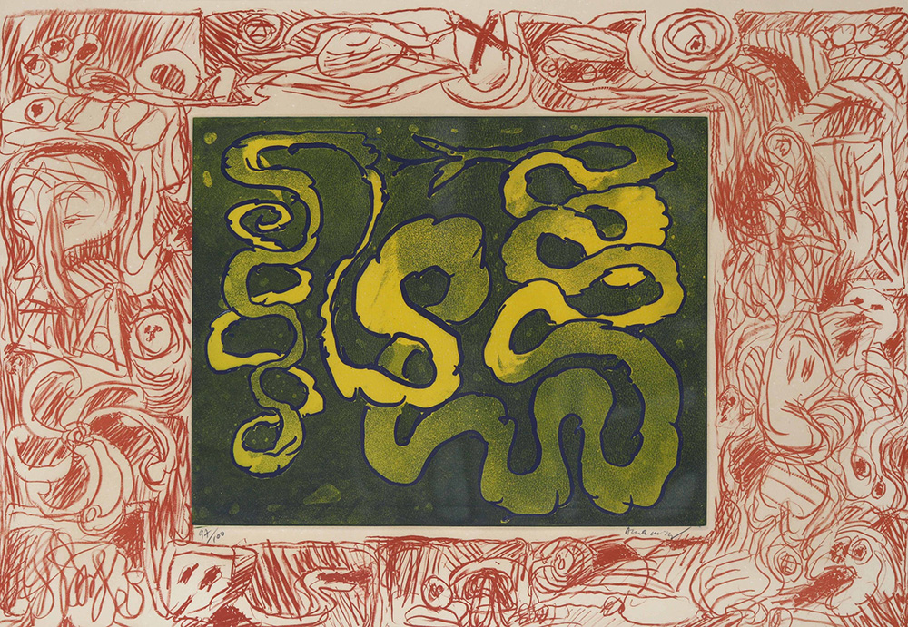 Pierre Alechinsky (1927), Sans sonnettes, 1971, litografia a colori, cm 63x90 firmata in basso a destra es. 97/100, Bibliografia: Rivière 478