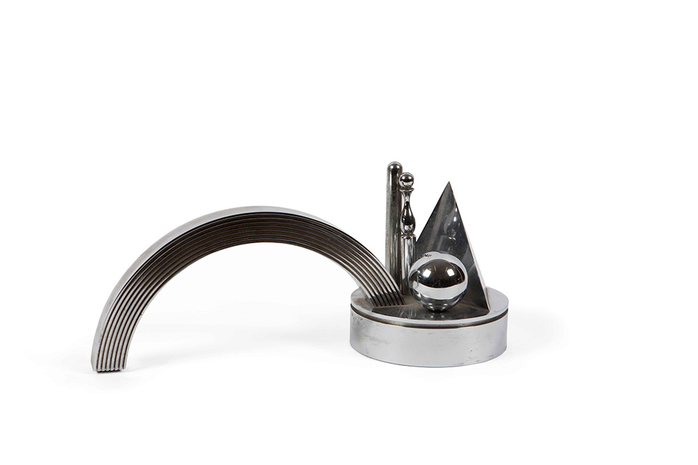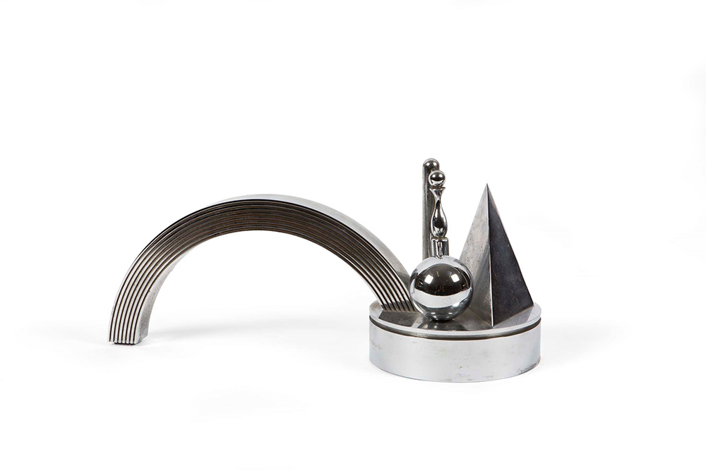Lucio Del Pezzo (1933), Arc-en-ciel, 1970, acciaio, cm 15x35x13,5 firmato, intitolato e datato sotto la base ed. di 75 esemplari, prova d’autore