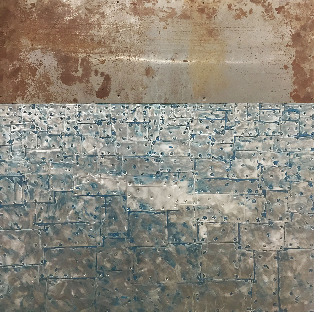 Lele De Bonis torino 1980 mare d'inverno 2016 assemblaggio, legno e alluminio 100x100 Certificato di autenticità