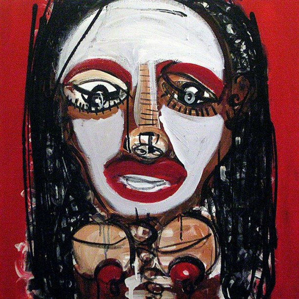 Silvano Bruscella Sesto San Giovanni 1974 Ragazza nera 2009 Tecnica mista su tela, acrilico, pastello a olio, spray 70x70 Certificato di autenticità