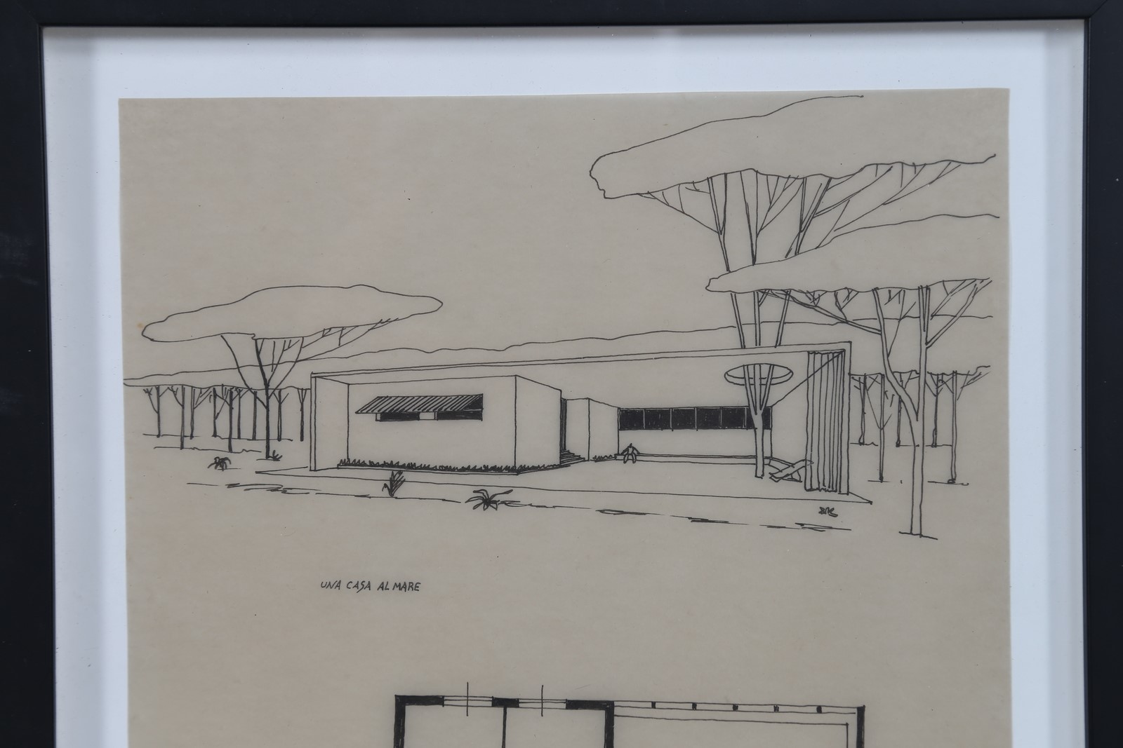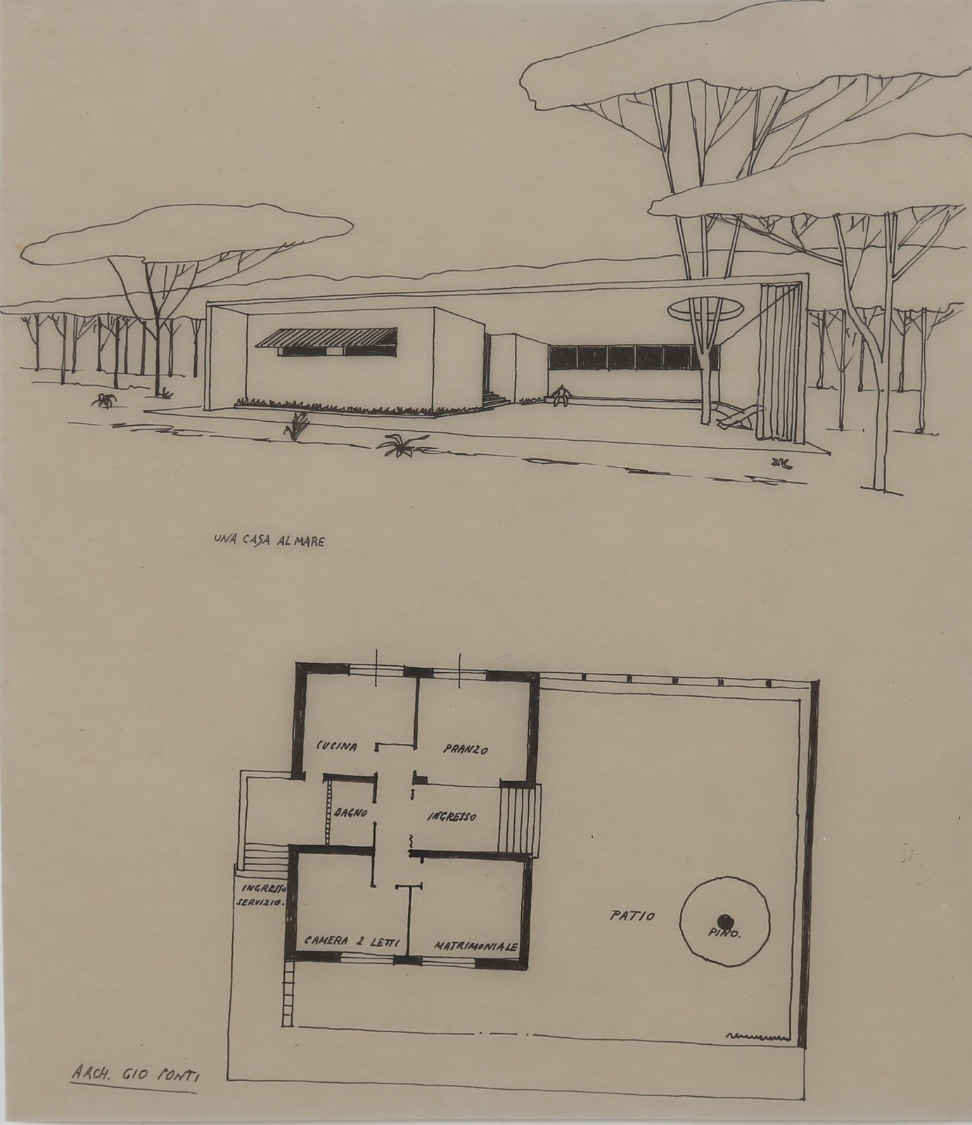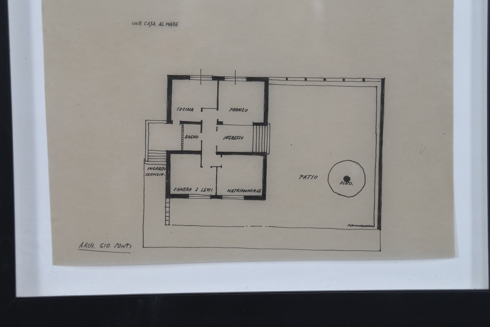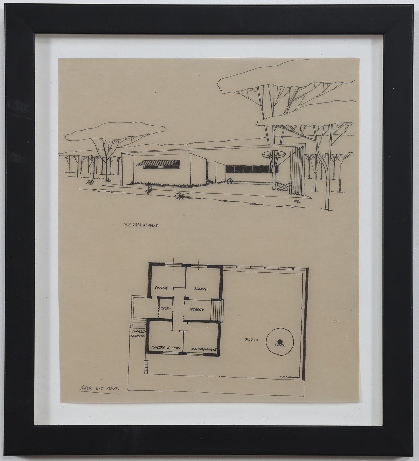 Lot 600 | PONTI GIO' (1891 - 1979) Disegno su carta, casa al mare. . . Cm 20,50 x...