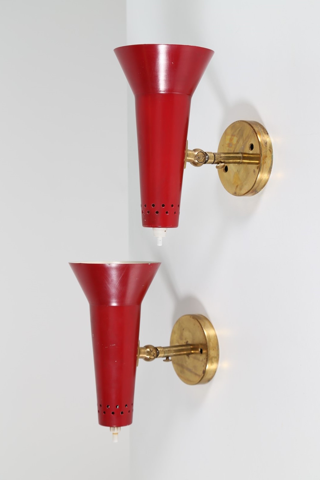 SARFATTI GINO (1912 - 1985) Coppia di lampade orientabili da muro in metallo laccato e ottone per Arteluce anni 50. . -. Cm 10,00 x 18,00 x 13,00. Pubblicazioni; Opere scelte 1938-1973. Selected works. Ediz. italiana e inglese di Marco Romanelli, Sandra Severi, fig.21 pag 387