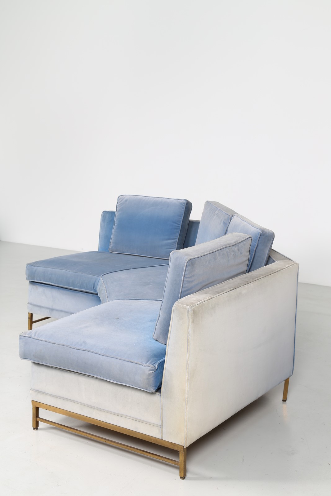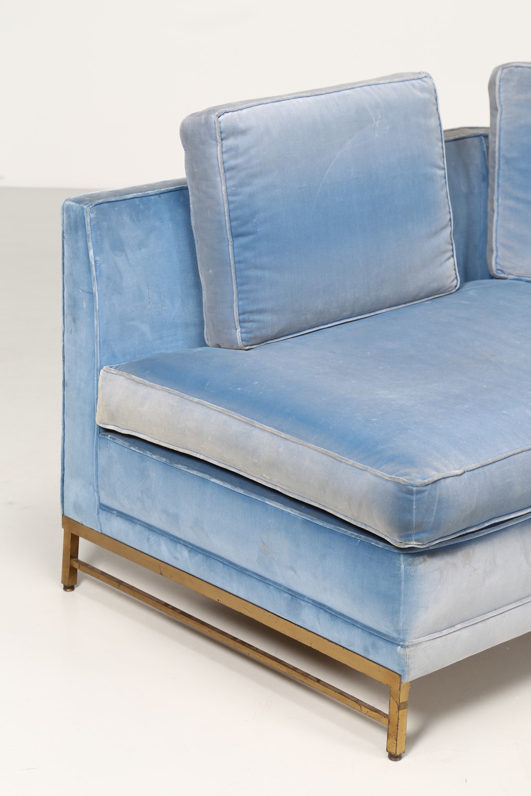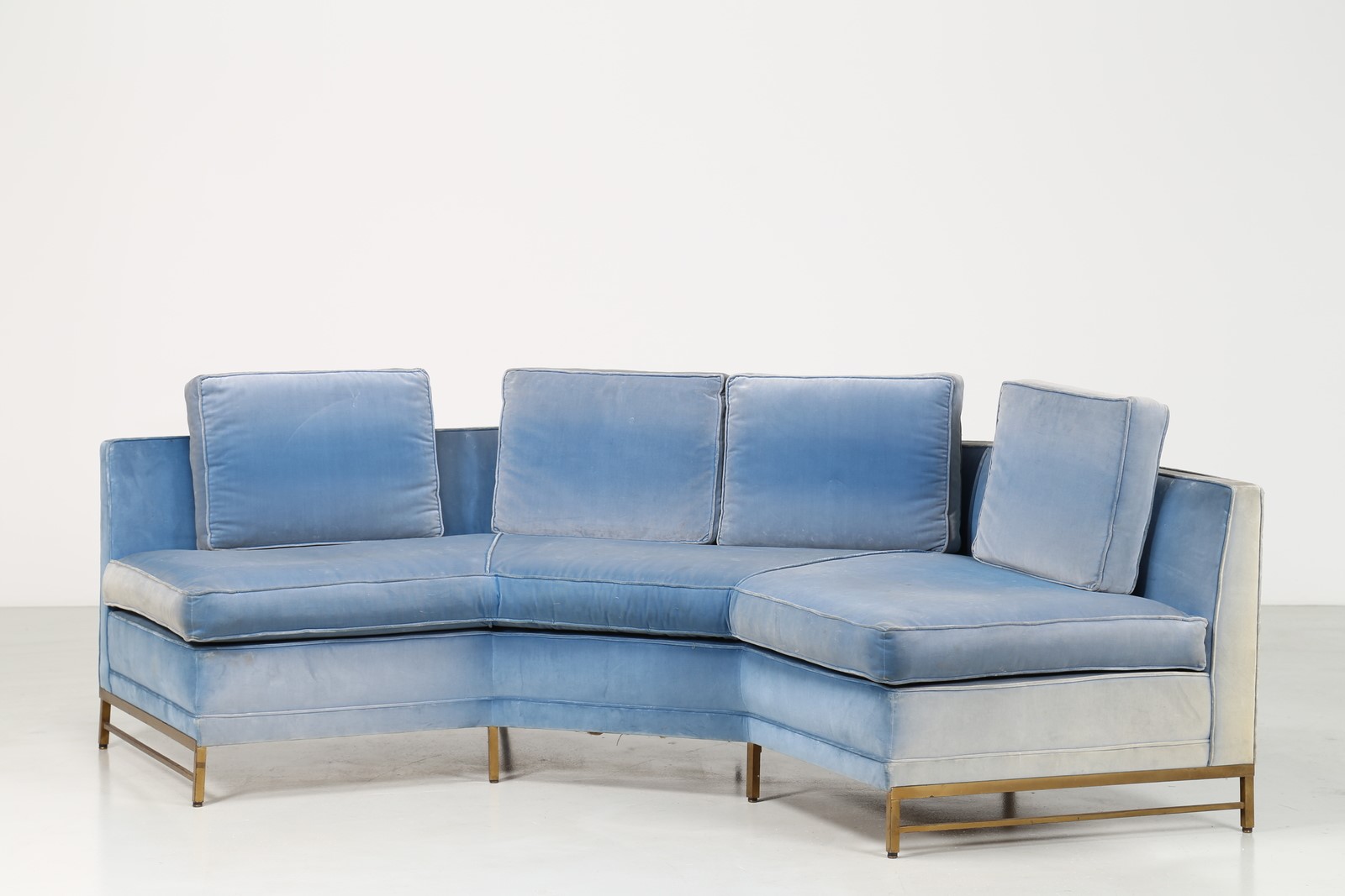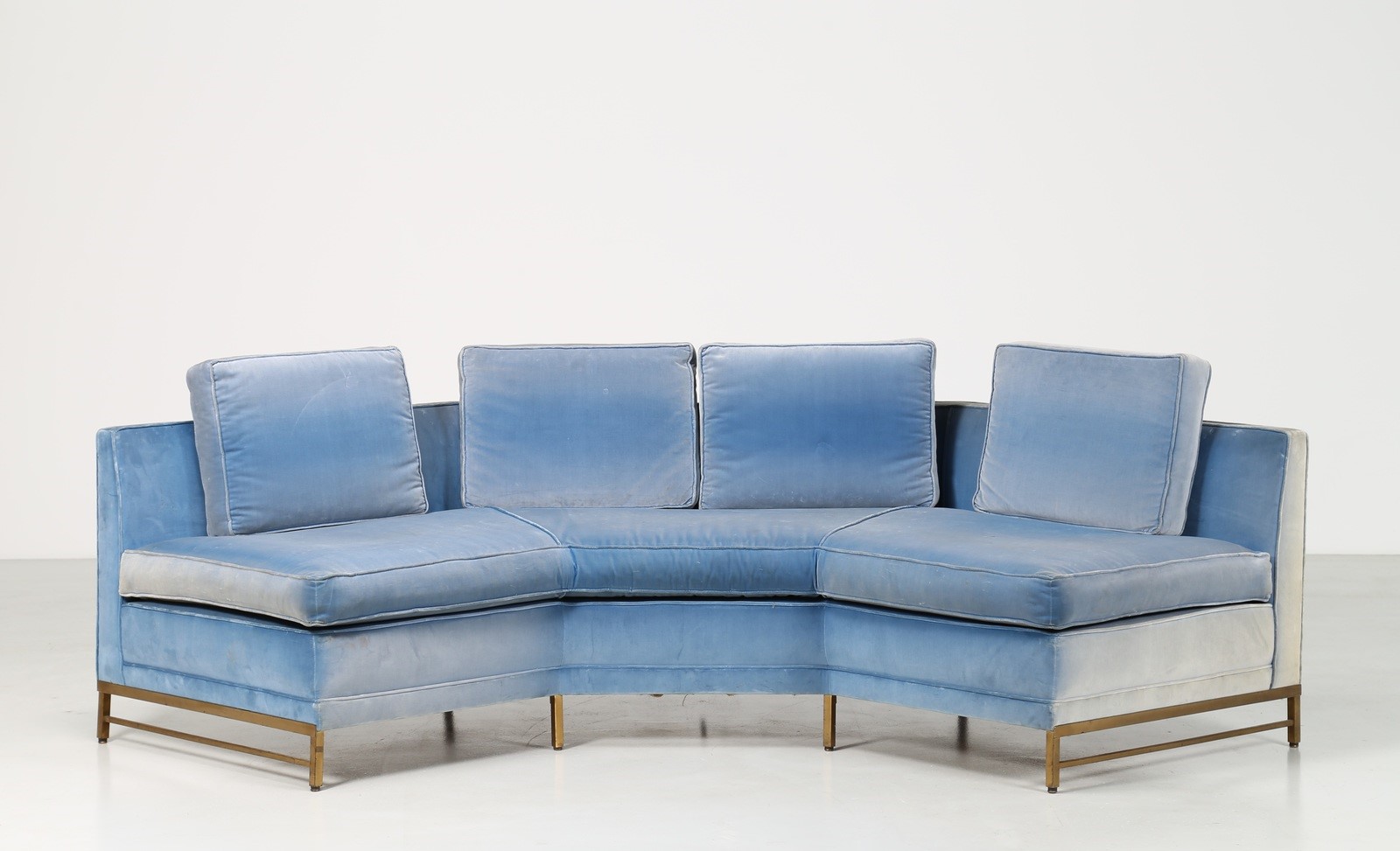 STUDIO BBPR (BANFI, BELGIOIOSO, PERESSUTTI, ROGERS) Divano in metallo anodizzato e tessuto, anni 50. Provenienza, dirigente Olivetti appartamento Milano. . -. Cm 265,00 x 73,00 x 133,00.