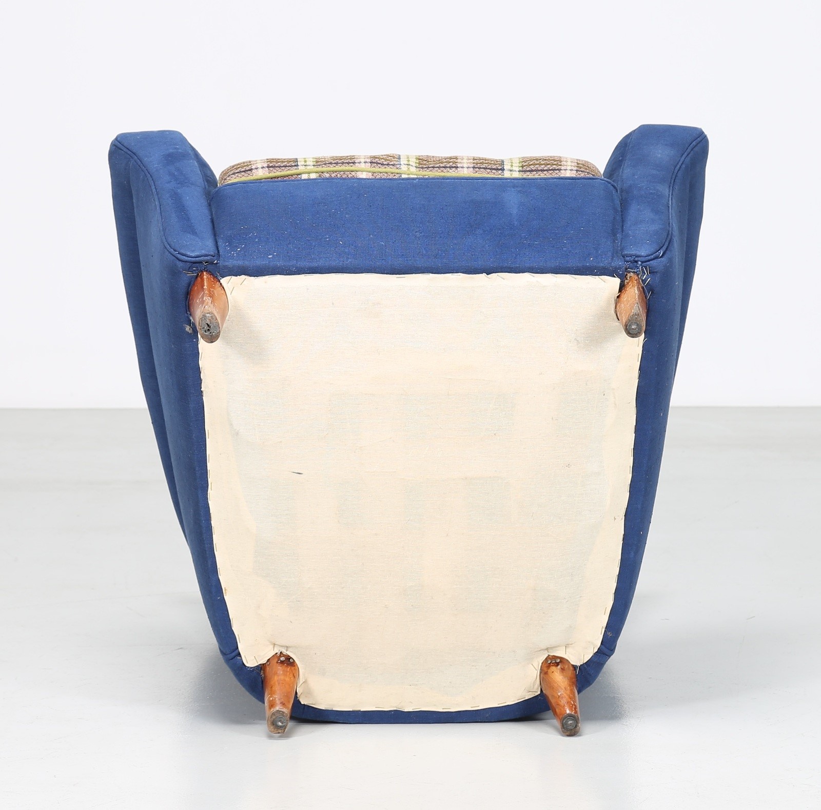 PARISI ICO (1916 - 1996) Poltrona in tessuto e legno, produzione Ariberto colombo, Cantù, arredi dimora interamente arredata da Ico Parisi negli anni 50 in Verona. Disponibile certificato di autenticità, Archivio del Design di Ico Parisi. . Cm 82,00 x 94,50 x 86,00. Pubblicazioni; Ico Parisi Design, Catalogo Ragionato, Silvana Editoriale a cura di Roberta Lietti, pag. 228, 1948.20.