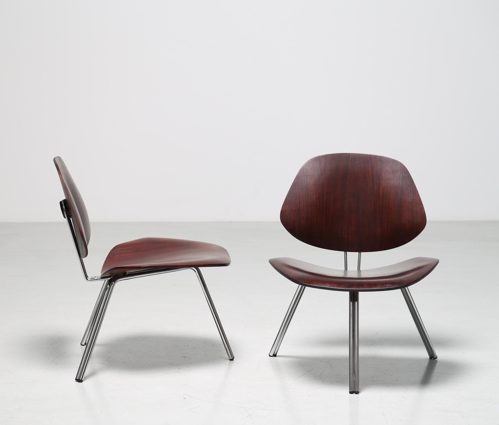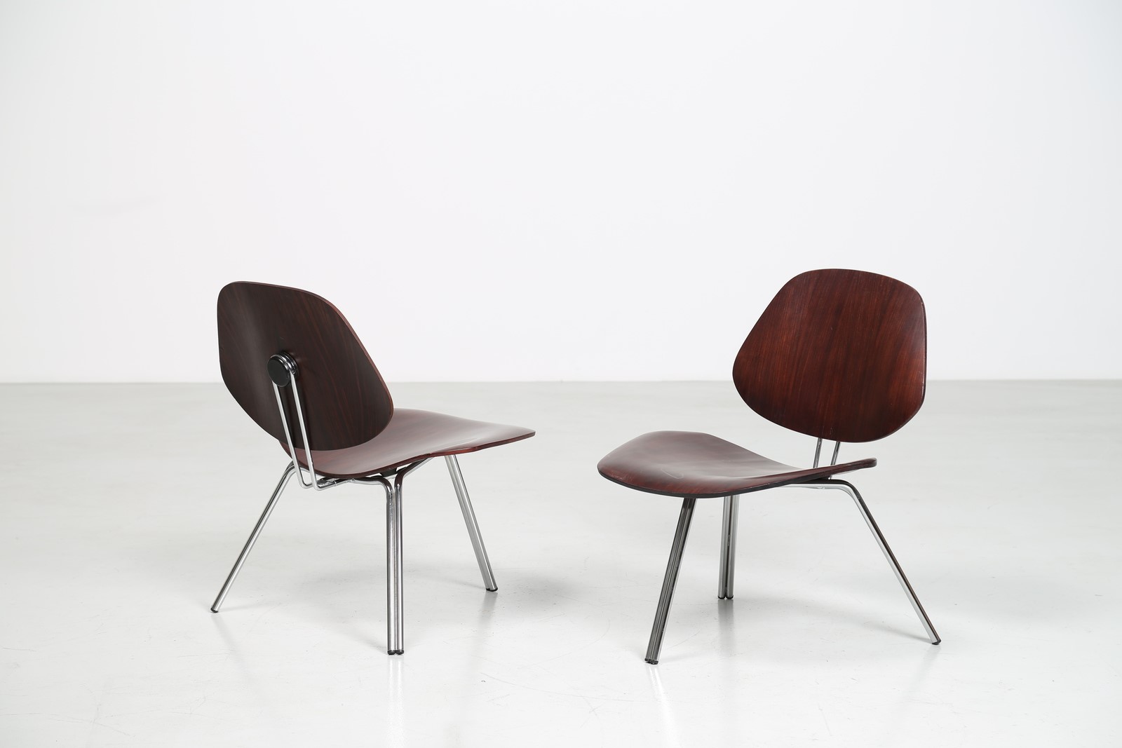 BORSANI OSVALDO (1911 - 1985) Coppia di poltroncine in acciaio cromato lucido, seduta e schienale in legno compensato curvato, mod. P31 per Tecno. . -. Cm 57,00 x 71,00 x 59,00. Pubblicazioni; Osvaldo Borsani, Giuliana Gramigna e Fulvio Irace, De Luca editore, Roma 1992, pag. 239; Catalogo Tecno, pagina 277.