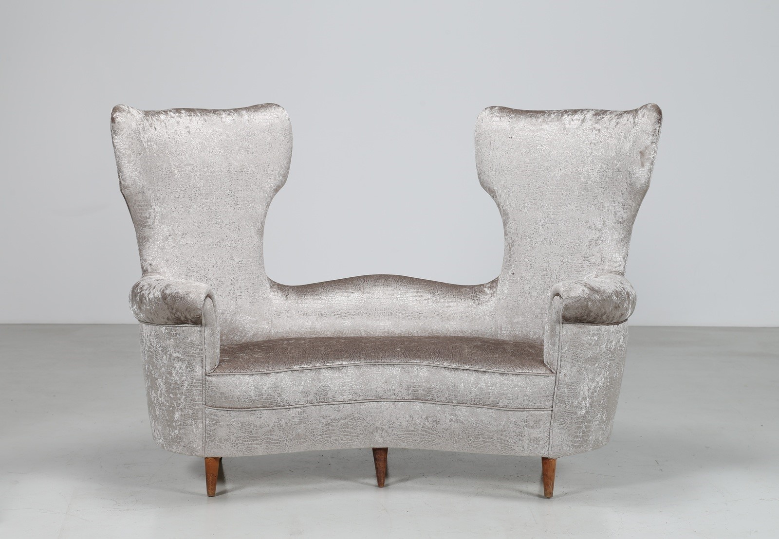 TEMPESTINI MAURIZIO (1908 - 1960) Divano in legno e tessuto, anni 40. -. Cm 165,00 x 112,00 x 87,00.