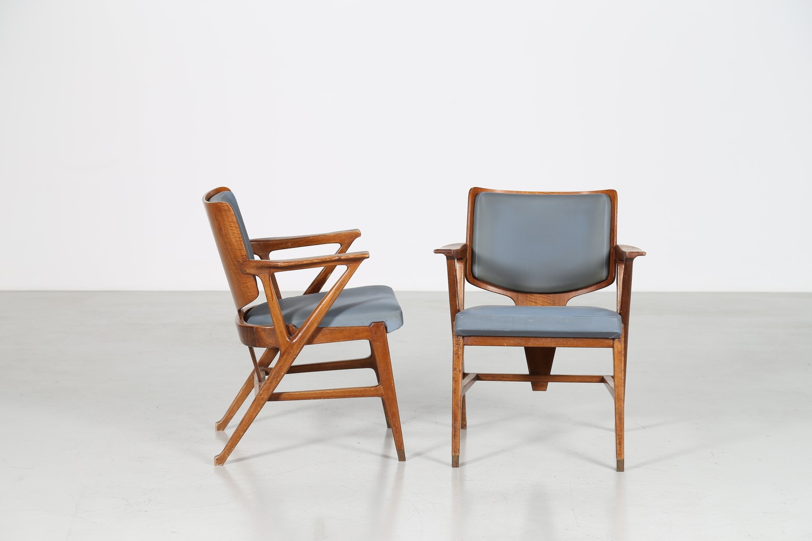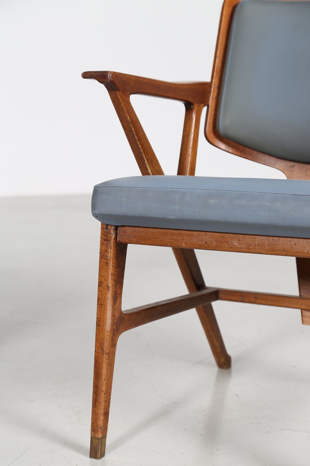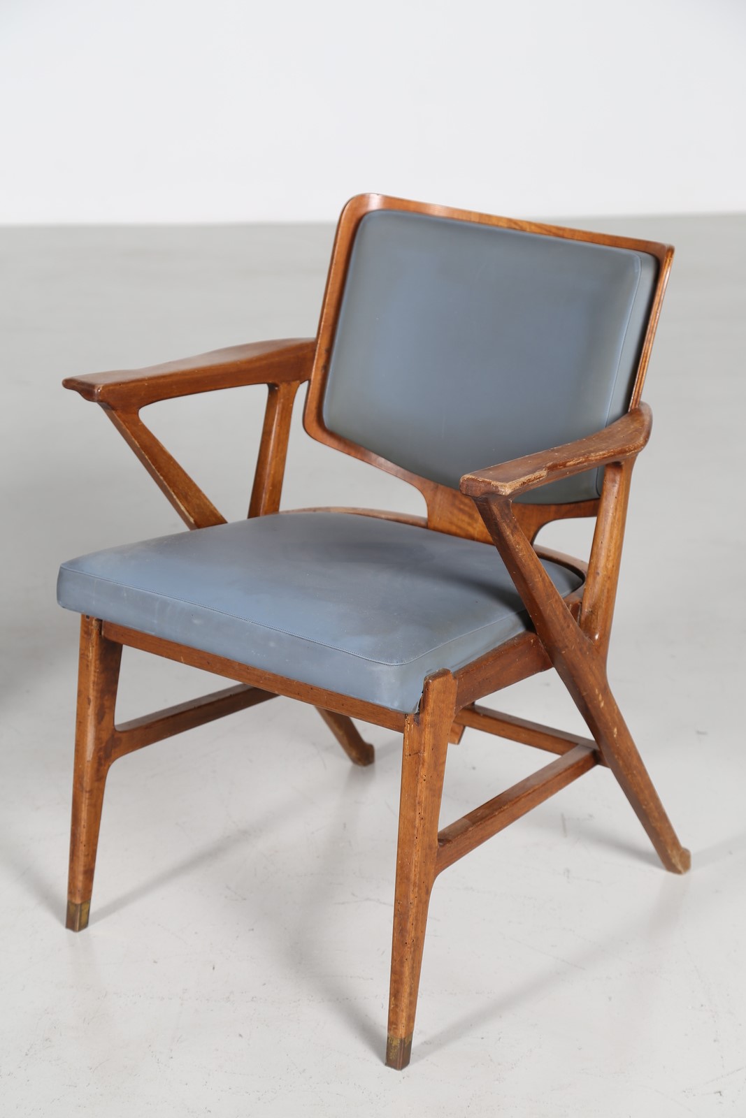 CIUTI ENRICO (n. 1910) Coppia di poltroncine in noce e tessuto, parte di...