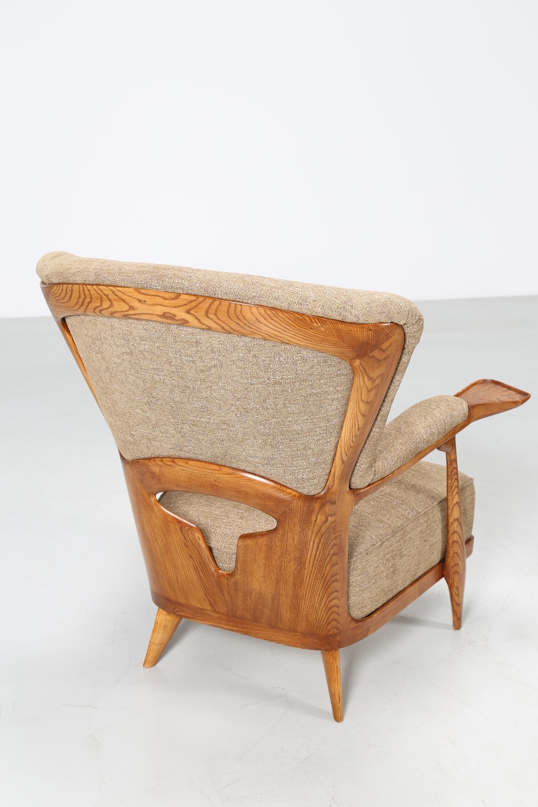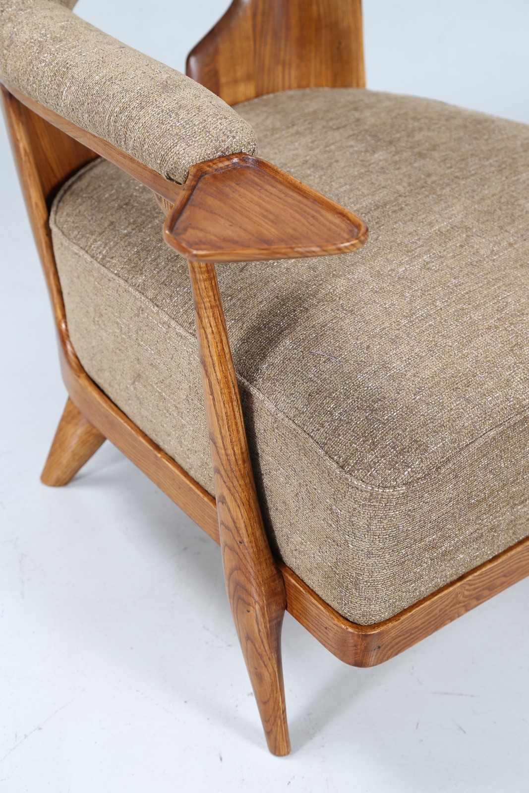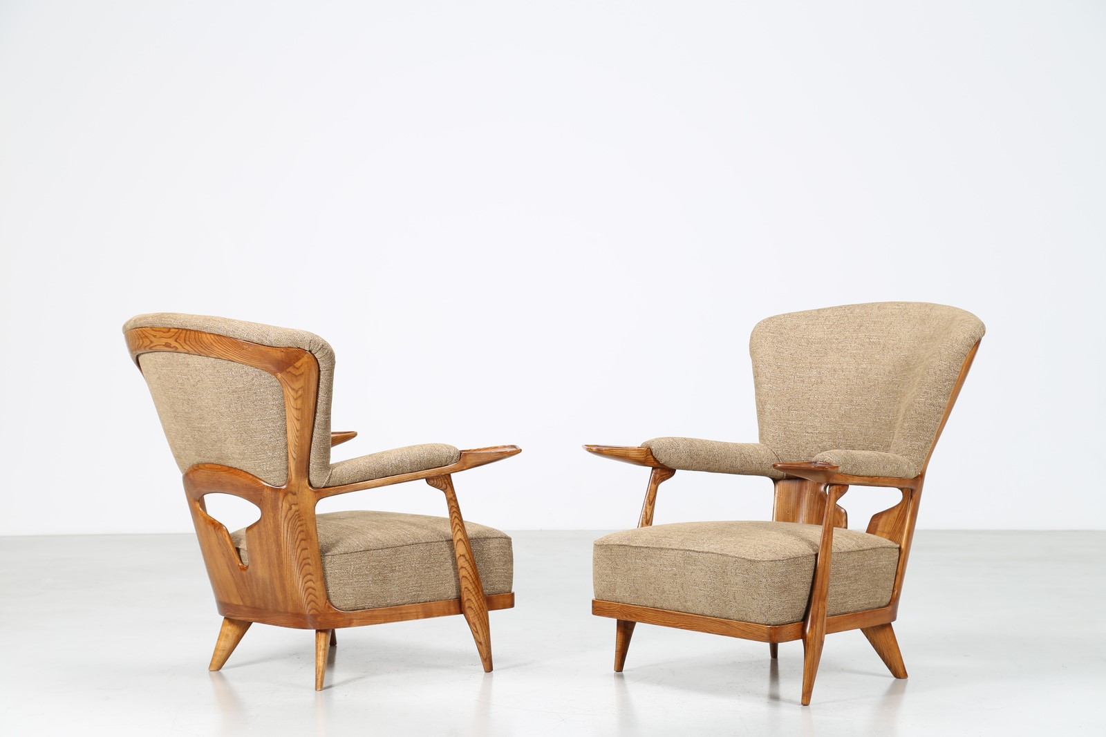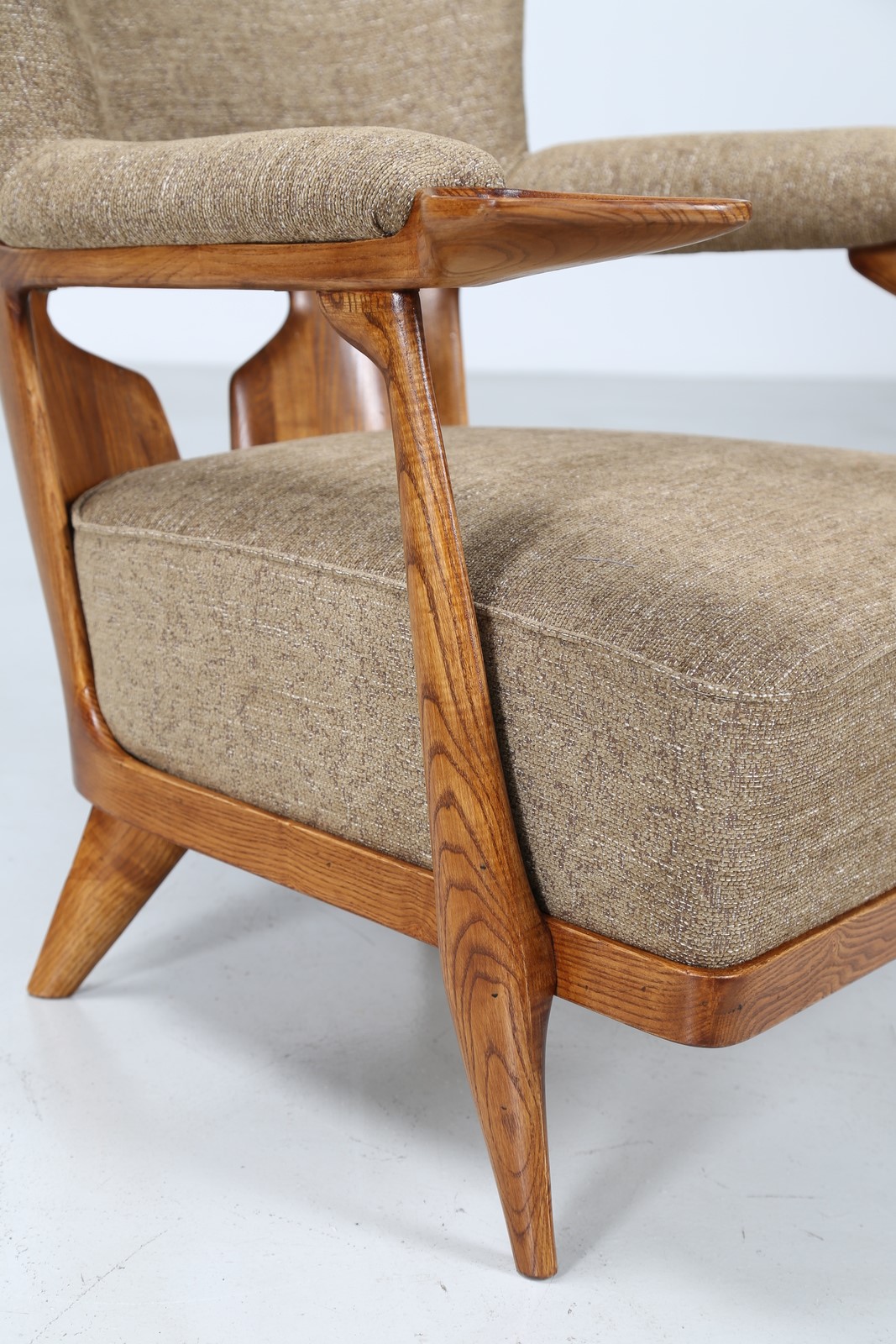 CIUTI ENRICO (n. 1910) Coppia di poltrone in rovere e tessuto originale, anni 50. . -. Cm 87,00 x 93,00 x 88,00. Pubblicazioni; Domus num. 253 dicembre 1950 pag. 142, esempio simile.
