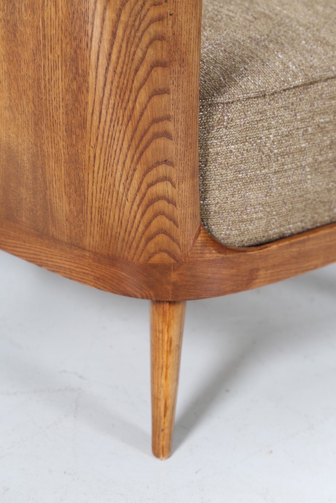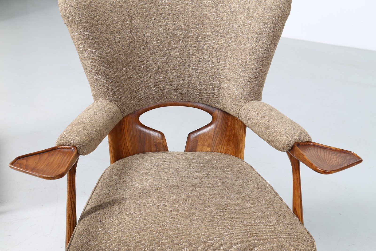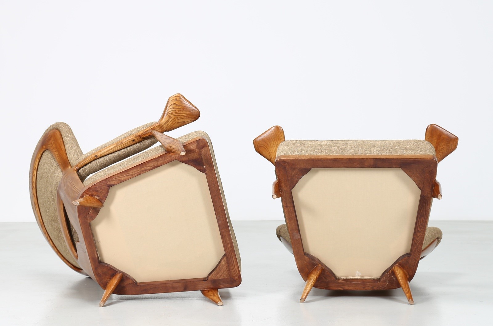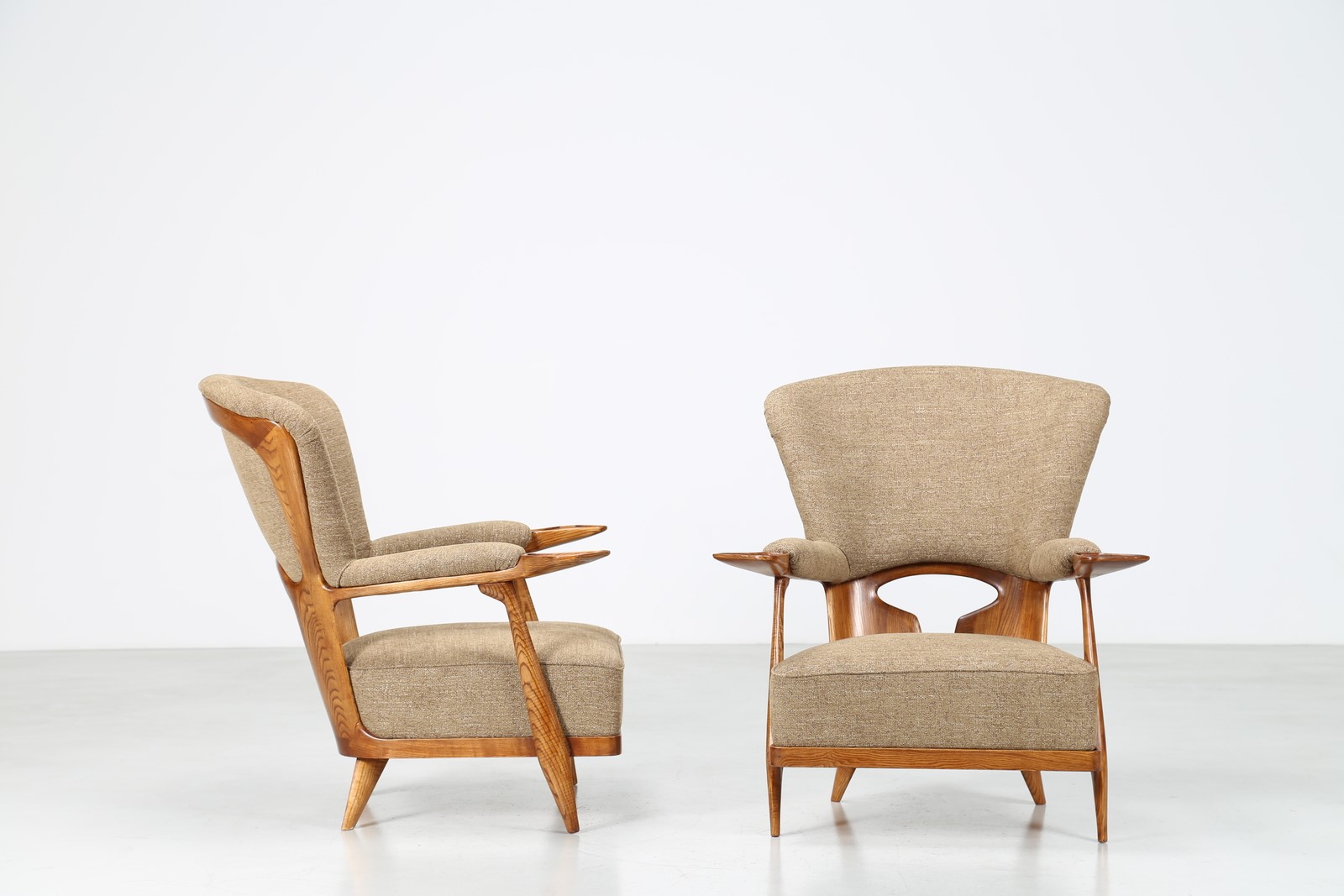 CIUTI ENRICO (n. 1910) Coppia di poltrone in rovere e tessuto originale, anni 50. . -. Cm 87,00 x 93,00 x 88,00. Pubblicazioni; Domus num. 253 dicembre 1950 pag. 142, esempio simile.