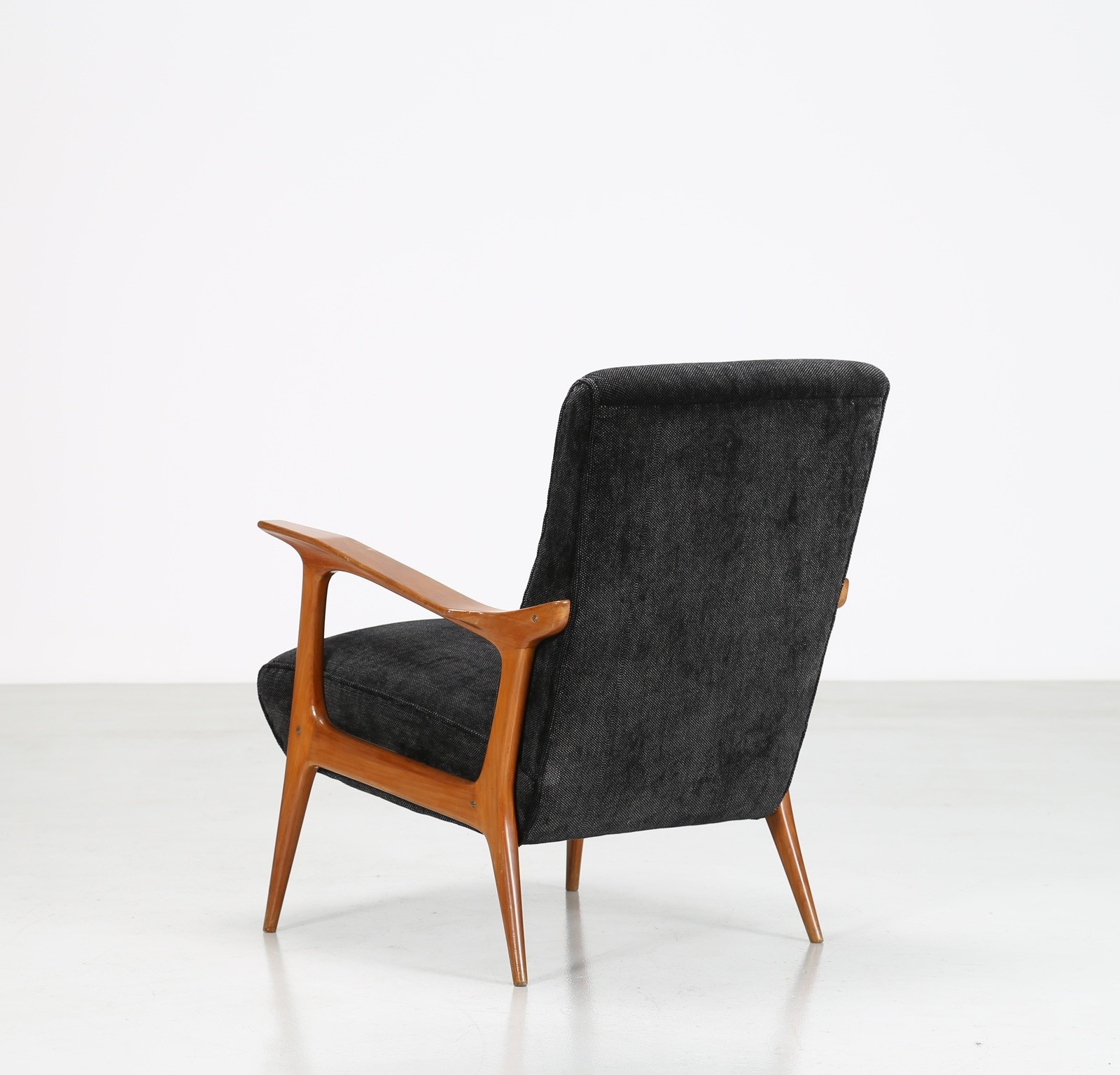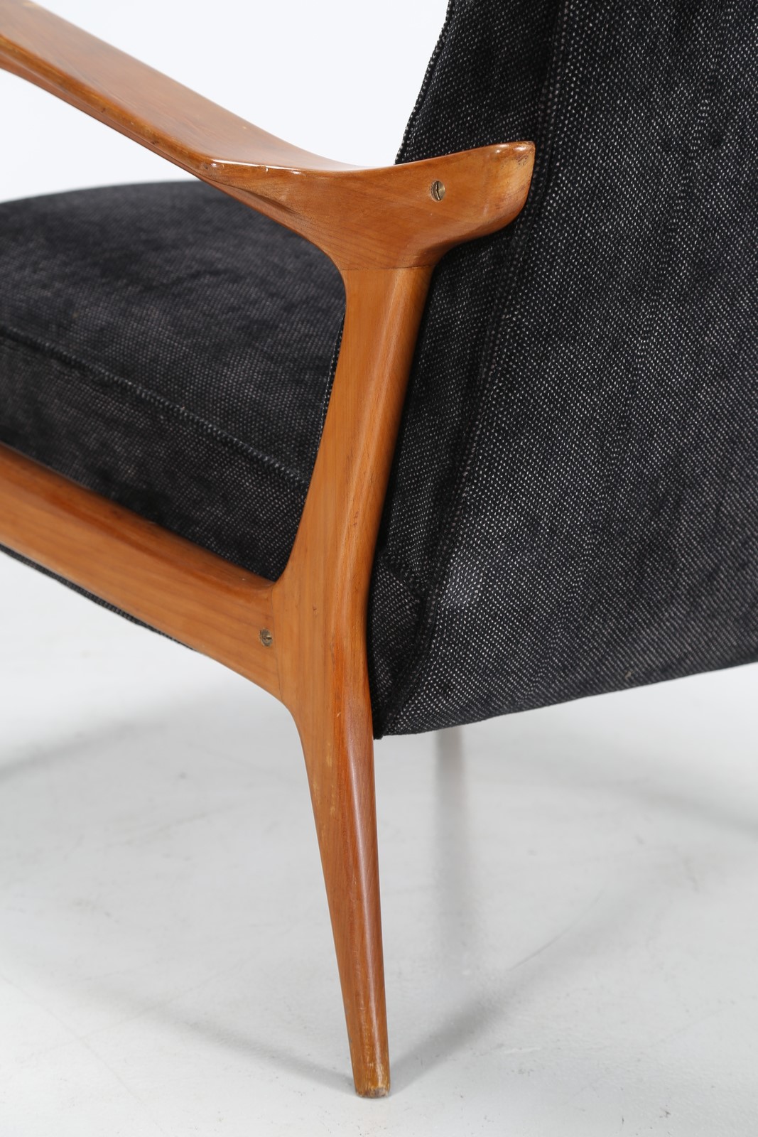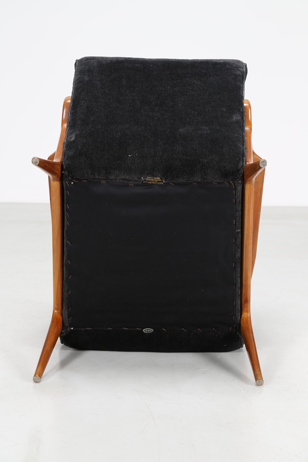 FARINA MOREZ RUGGERO Poltrona in legno e tessuto, per Cassina, anni 50....