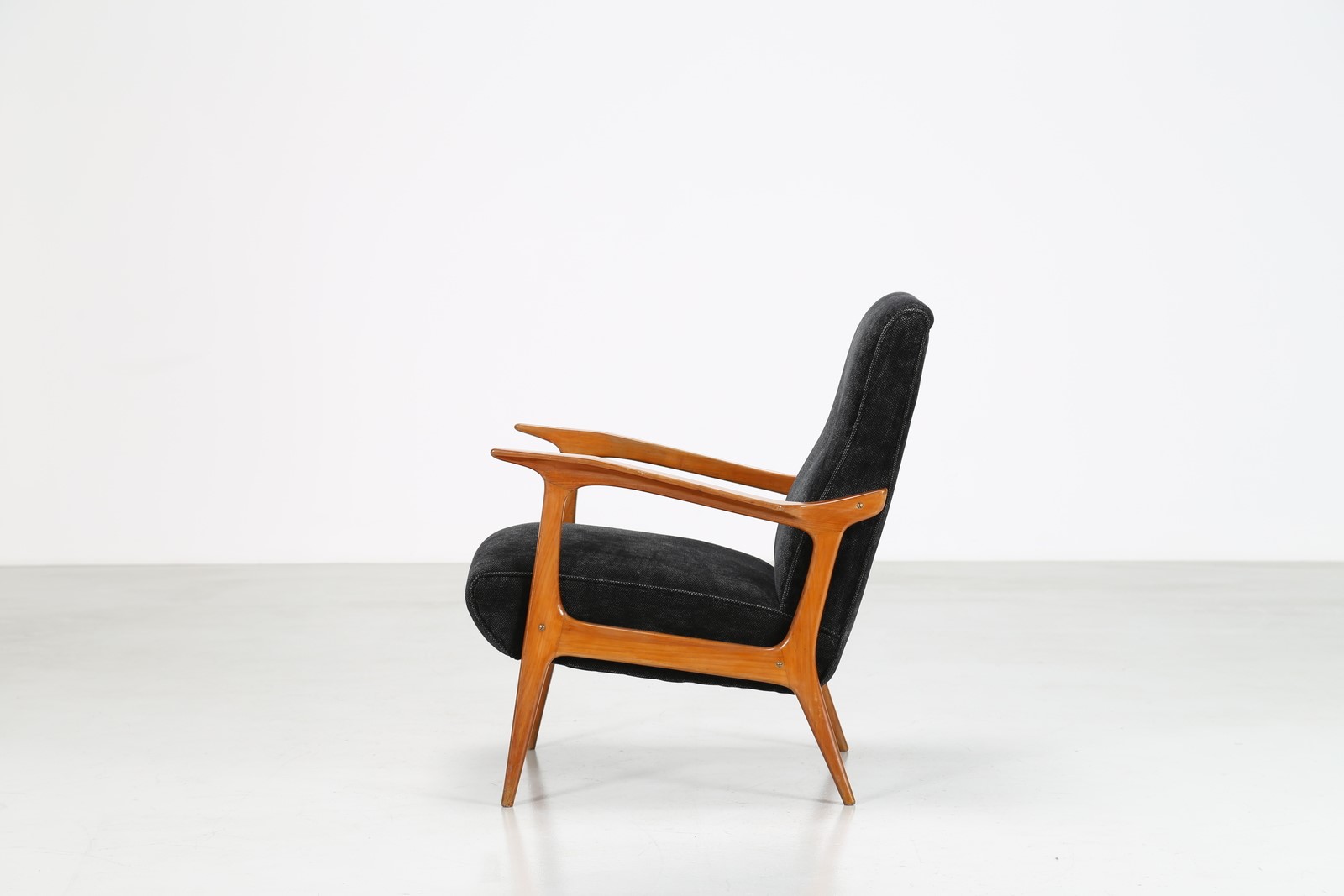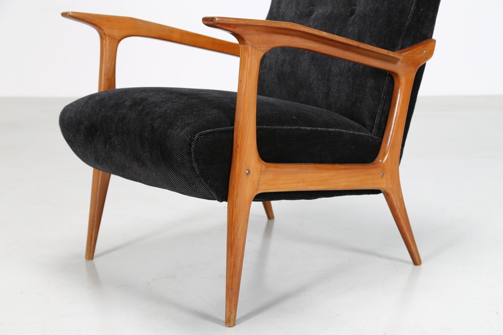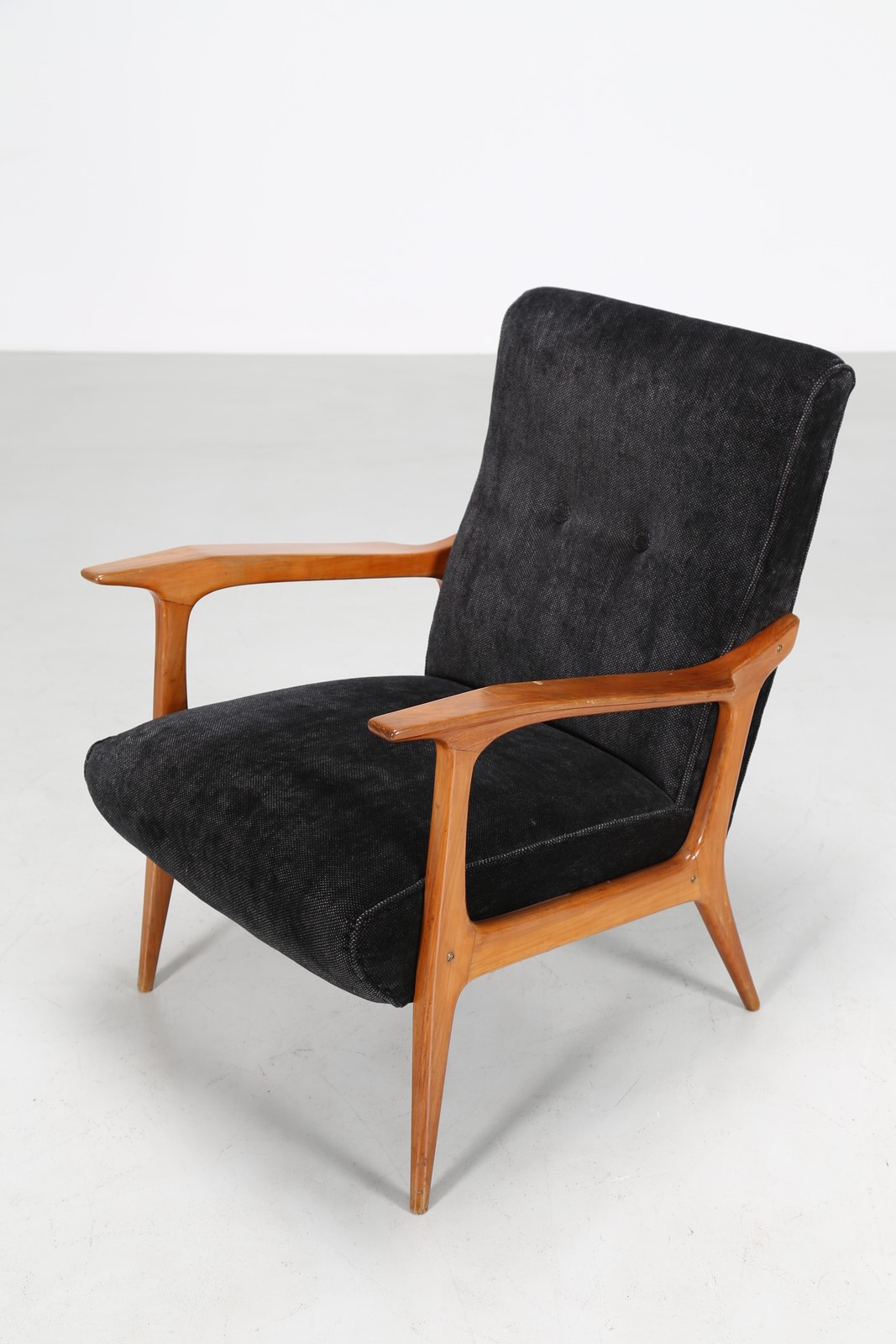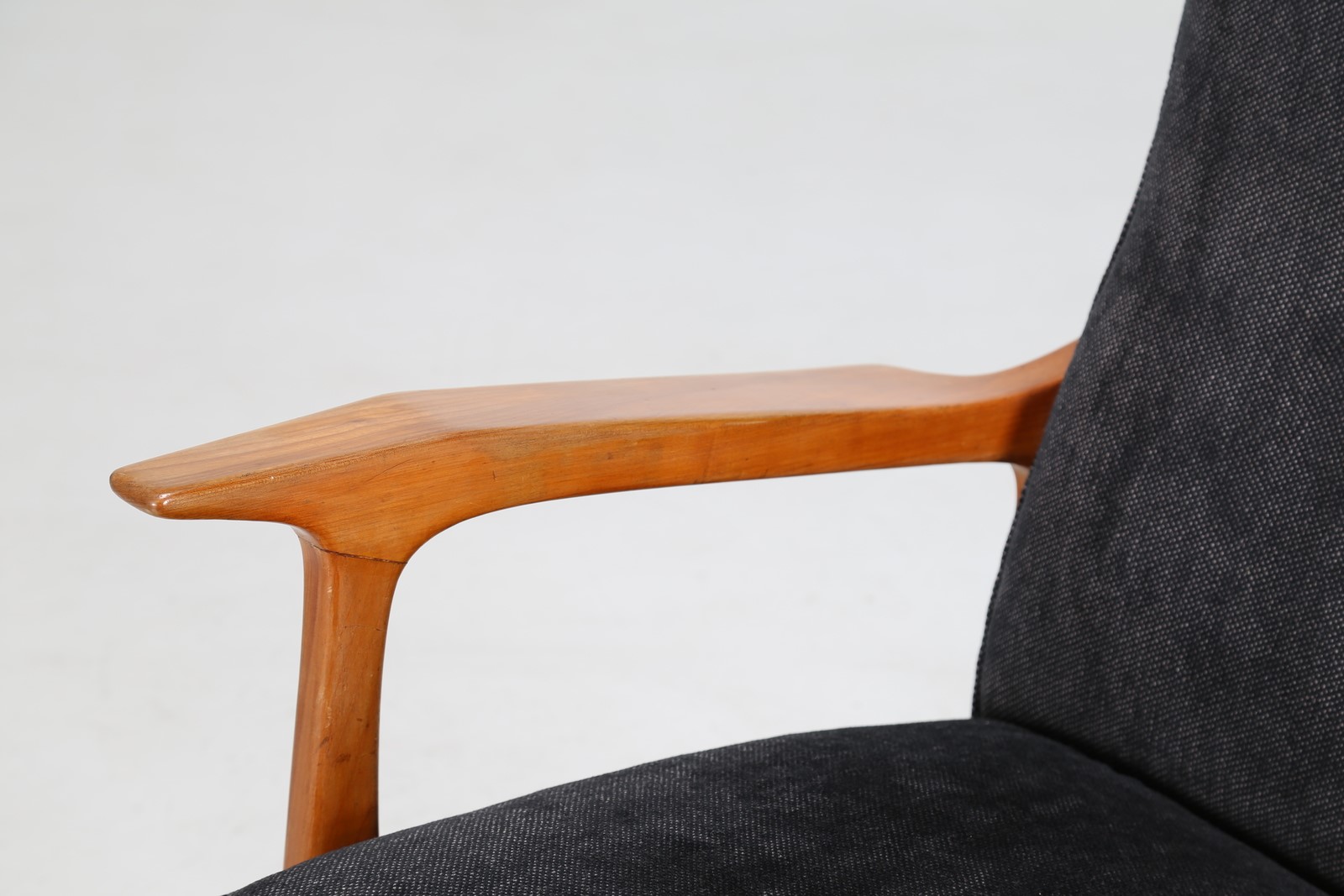 FARINA MOREZ RUGGERO Poltrona in legno e tessuto, per Cassina, anni 50....