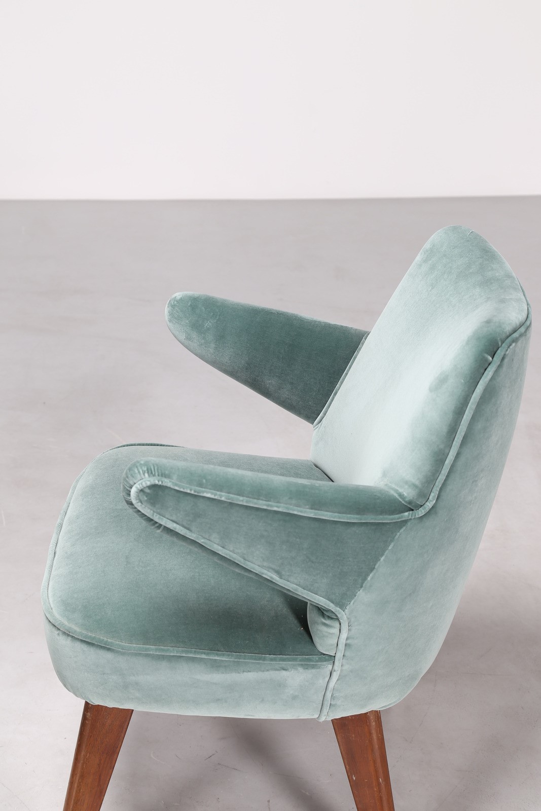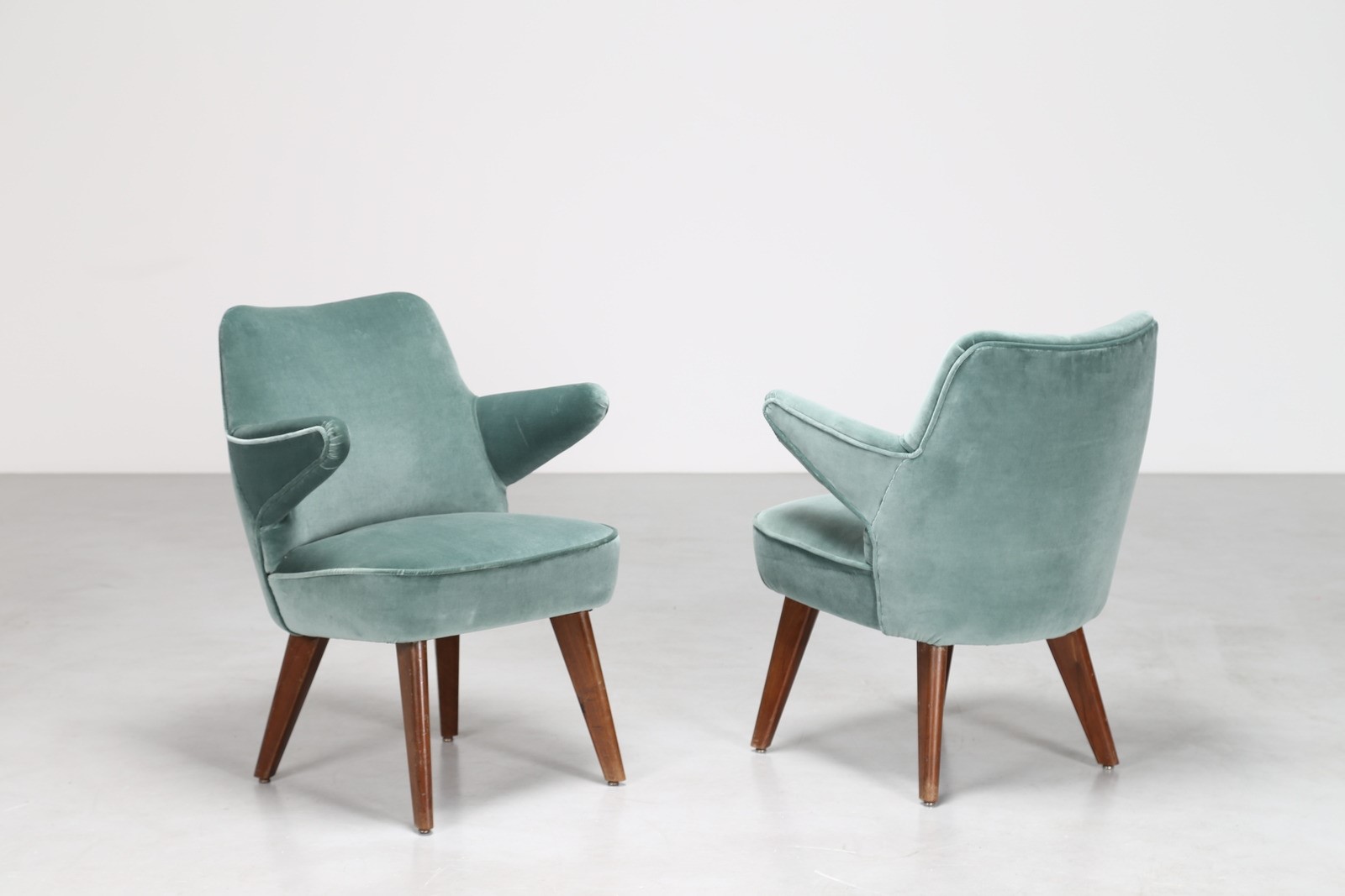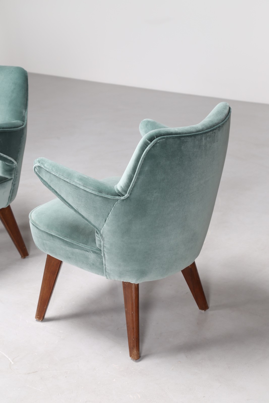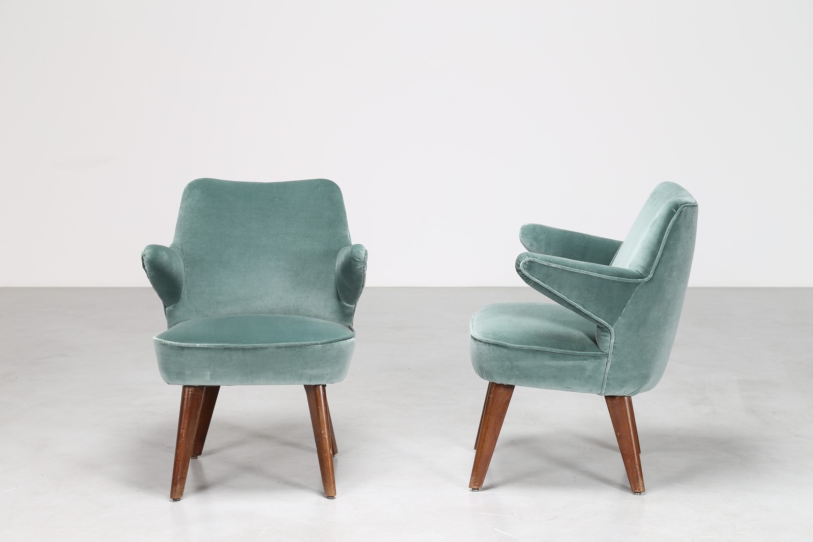 ZONCADA NINO (1898 - 1988) Coppia di poltrone in legno e tessuto anni 50°. -....