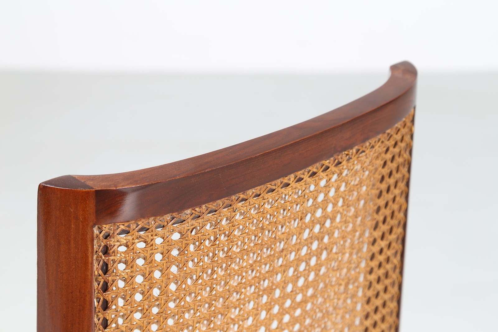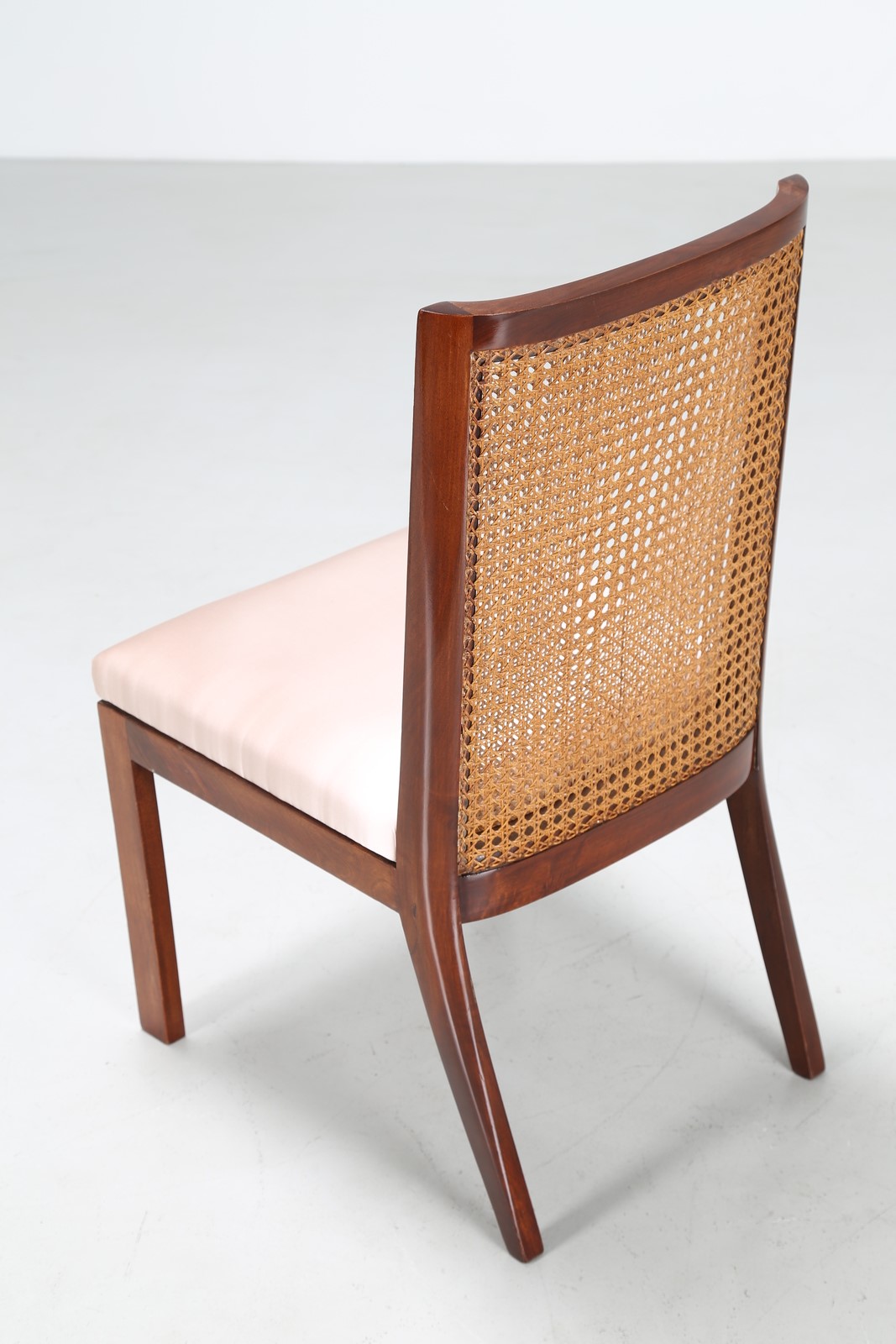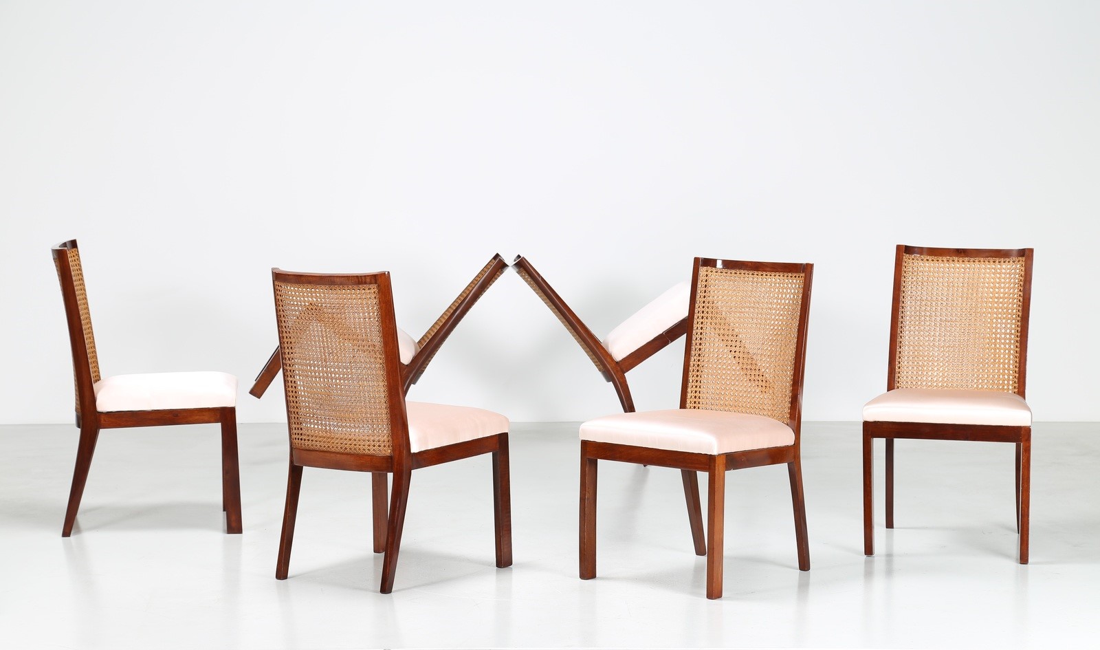 ASNAGO MARIO Sei sedie in palissandro e canna d'india, anni 30, . . Cm 49,00 x 90,00 x 57,00. Pubblicazioni; Domus num. 129 settembre 1938 pag. 50