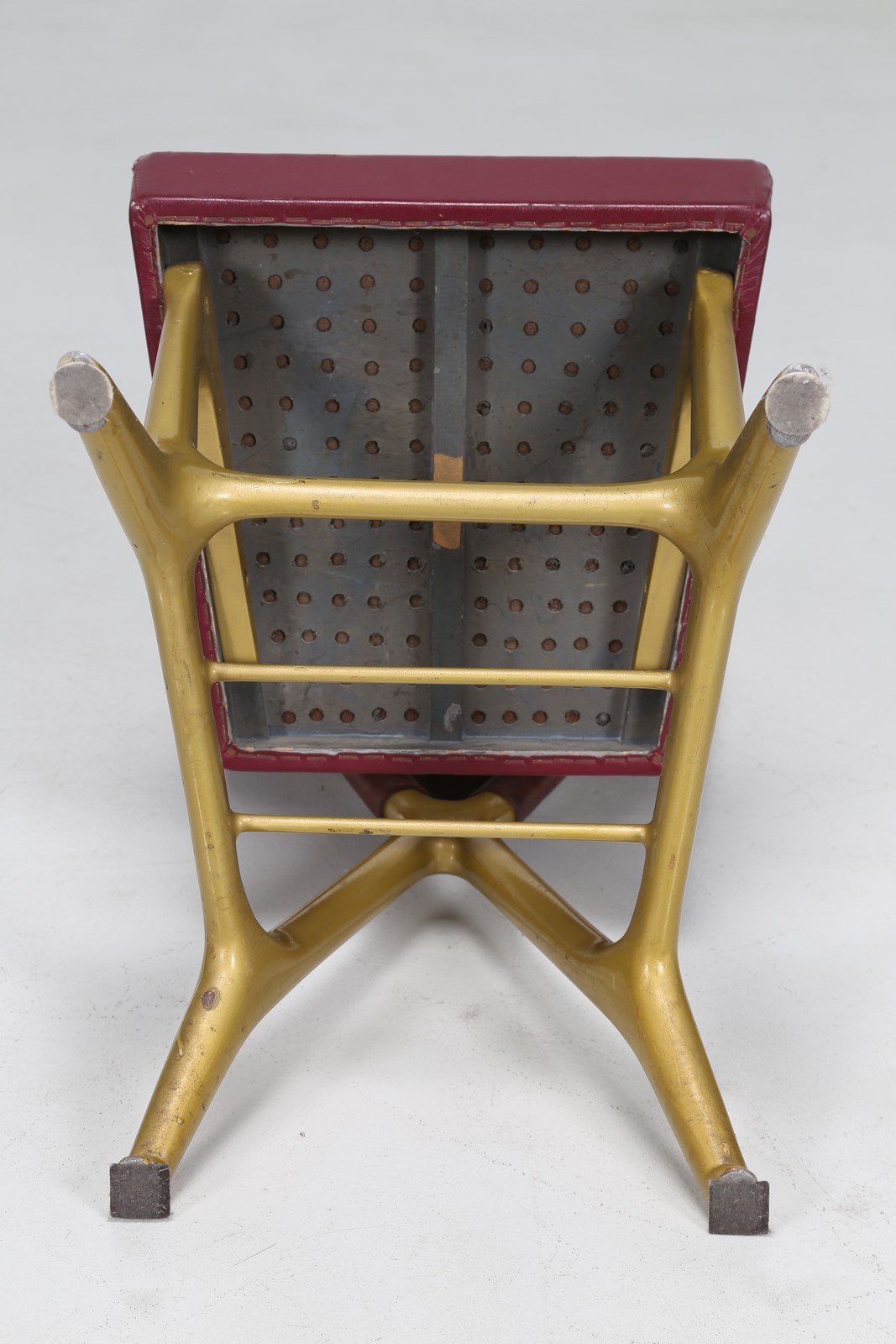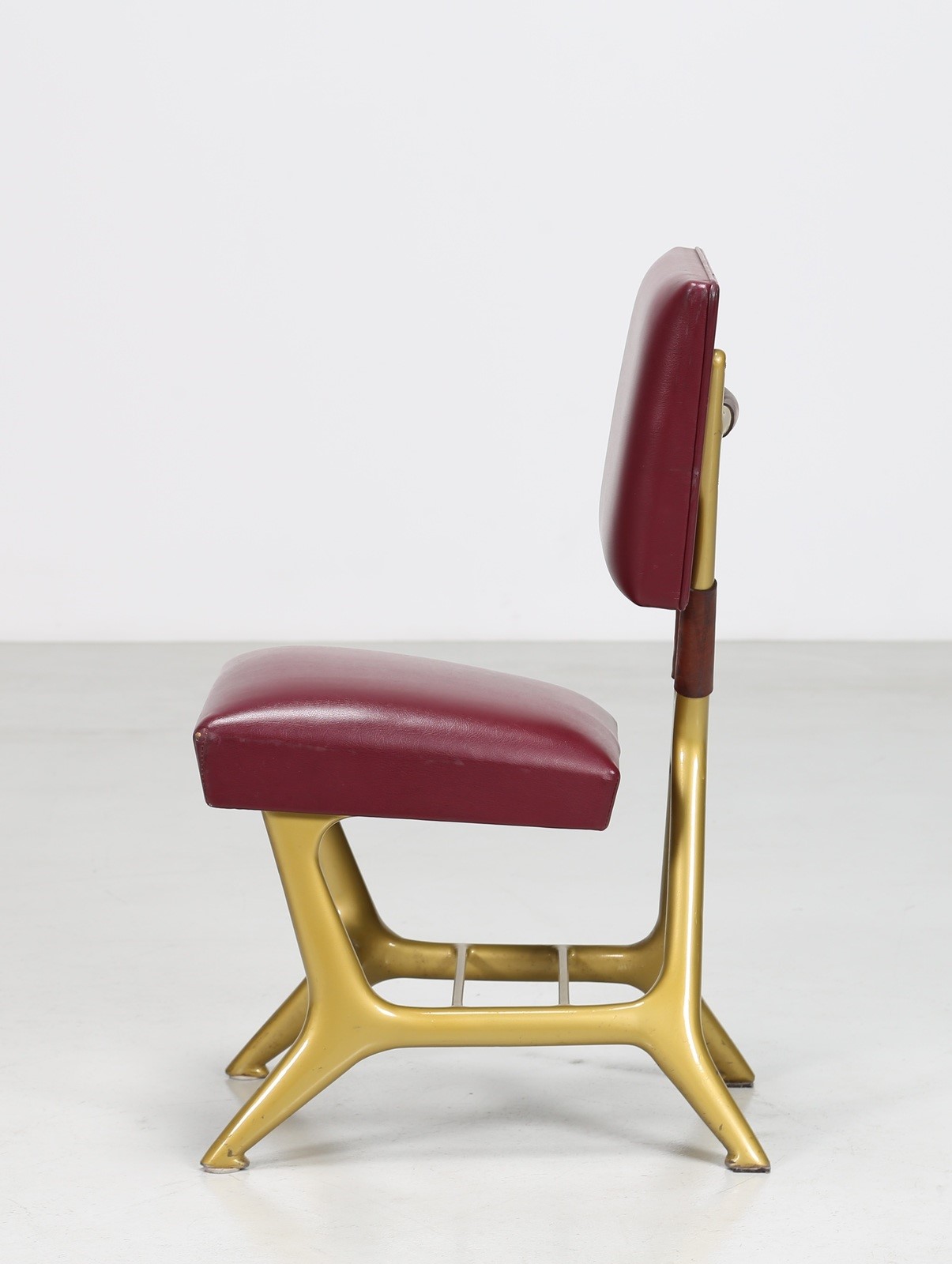 GIO' PONTI, GIULIO MINOLETTI Poltroncina in fusione di ottone e rivestimento in skai per il treno Settebello ETR 300, per Breda Ferrovia 1947. Expertice a cura di Salvatore Licitra Archives Gio Ponti Milano. . . Cm 40,00 x 82,00 x 53,00.